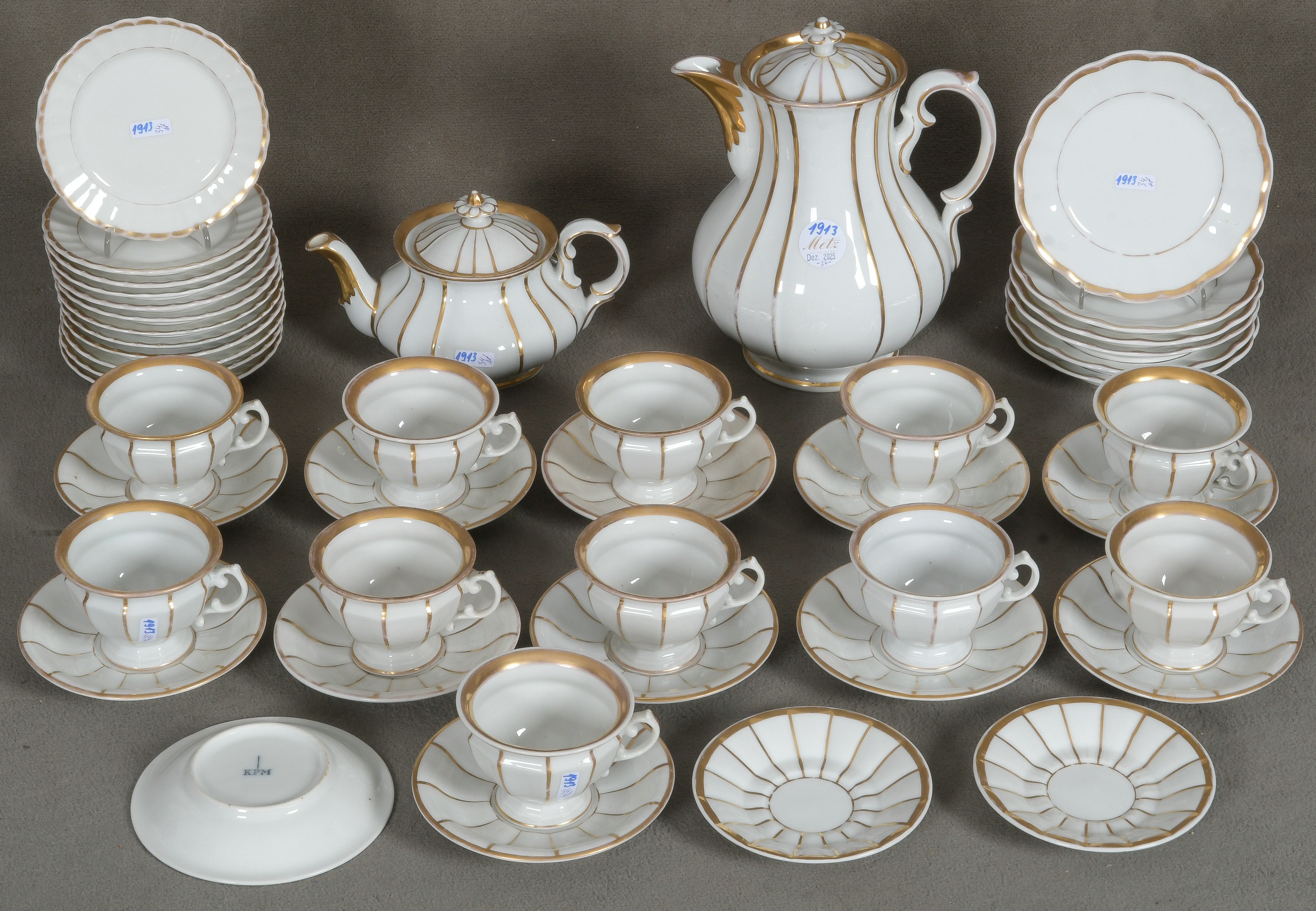 - Katalog-Nr: 191334-tlgs. Service. Krister 19. Jh. Porzellan, weiß glasiert mit Goldstreifen; am Boden gemarkt.o.L.