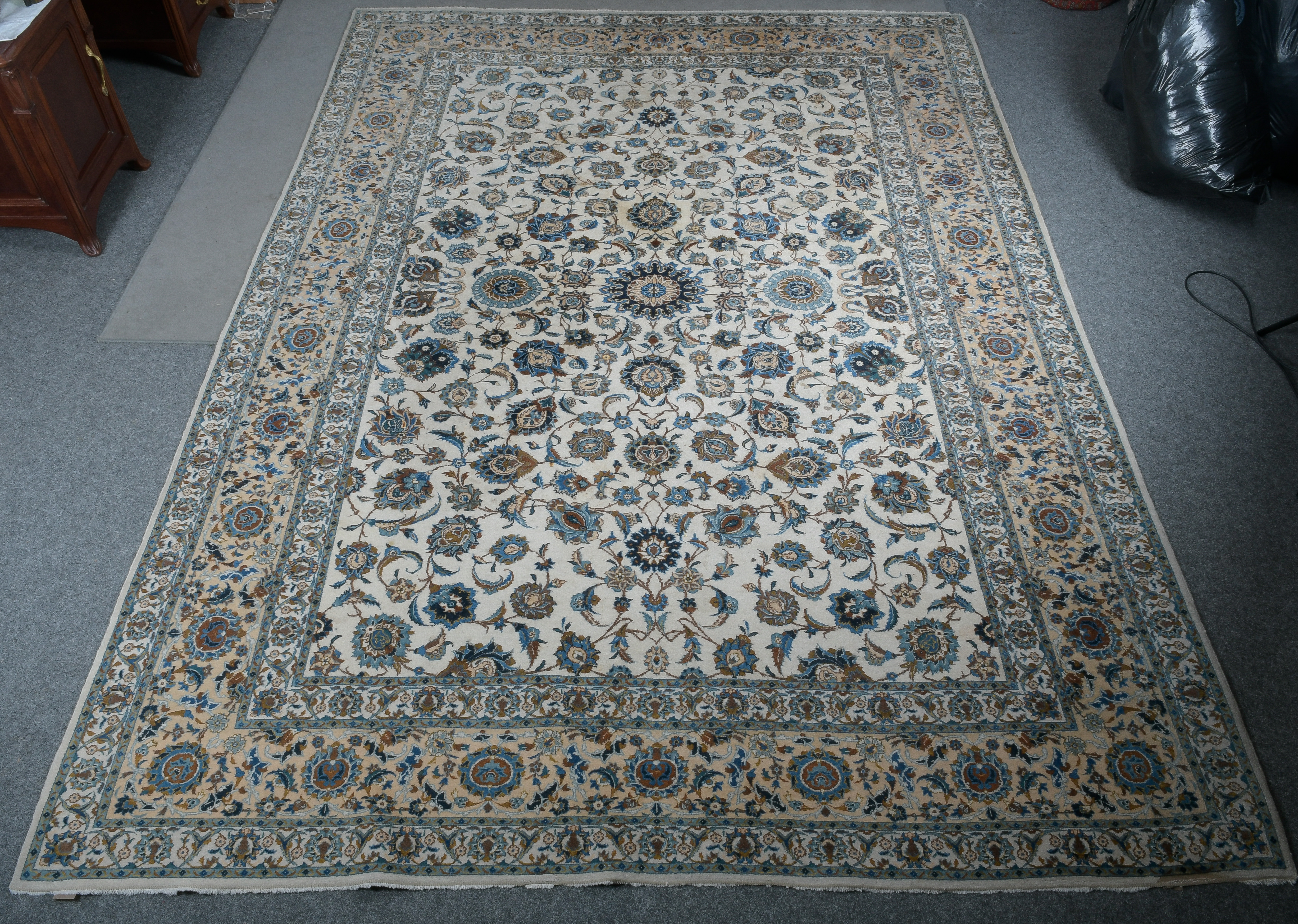 - Katalog-Nr: 1920Keshan-Teppich, 388 x 295 cm. Expertise der Galerie Teheran, Saarbrücken, vom 11.9.1982 liegt vor.o.L.