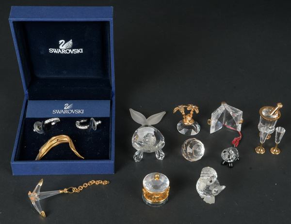 - Katalog-Nr: 1946Konvolut Swarovski-Zierobjekte und Ohrstecker, versilbert.o.L.