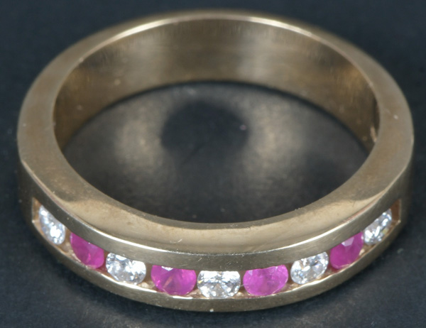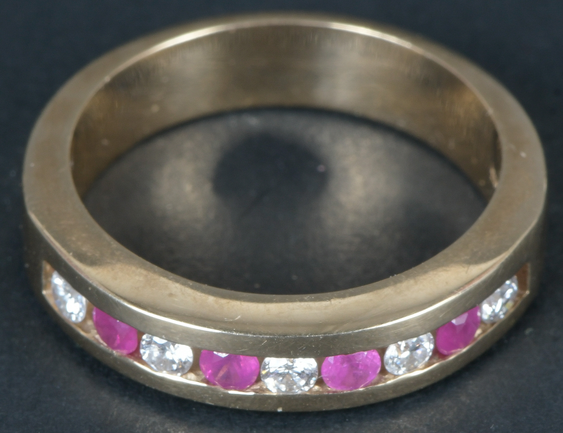 - Katalog-Nr: 1962Damenring. 14 kt Gold, besetzt mit Brillanten, ca. 0,20 ct, und Rubinen, Gesamtgewicht ca. 6,95 g, Ringgröße 58.o.L.