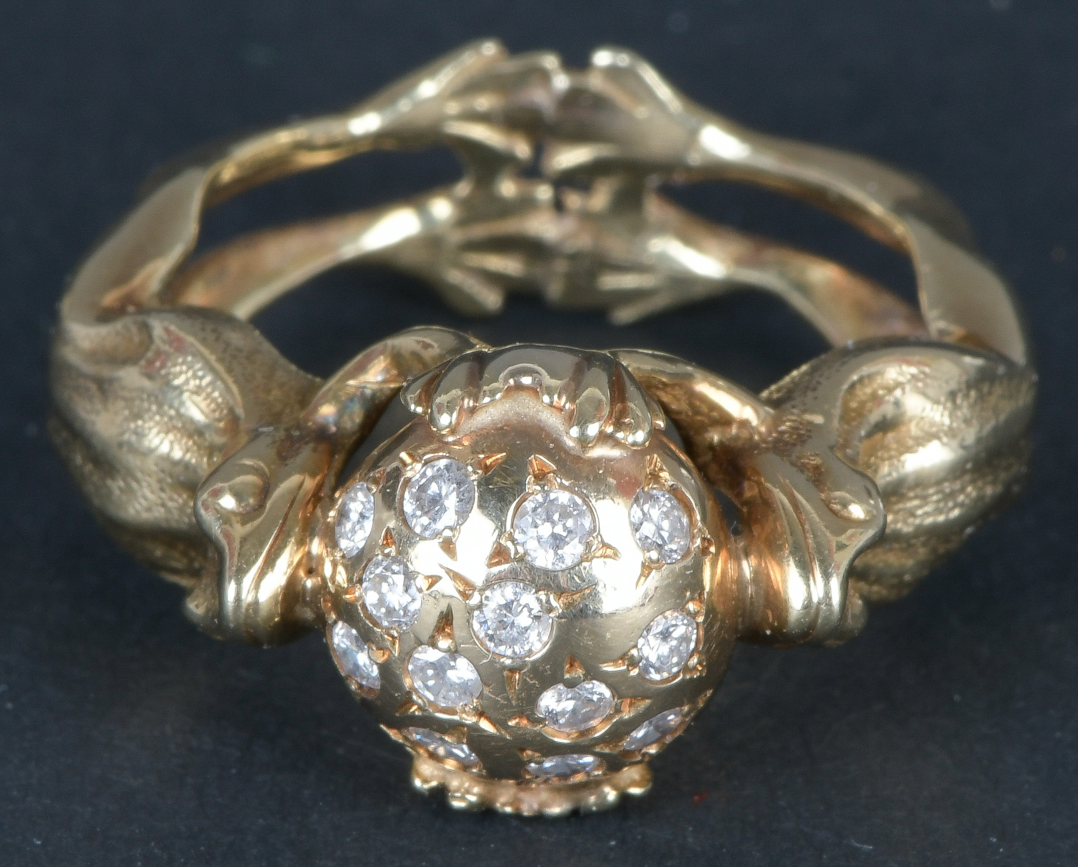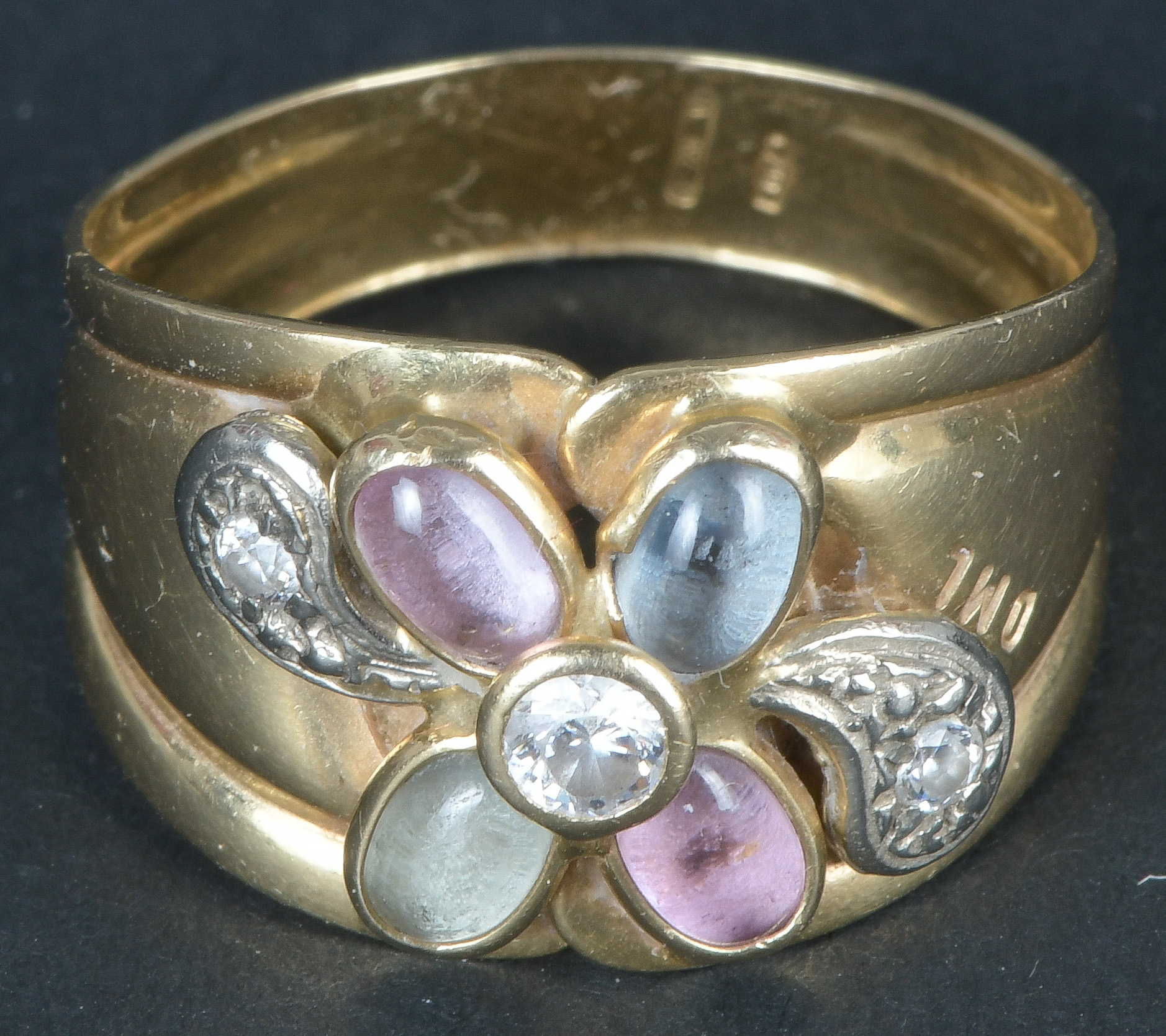 - Katalog-Nr: 1963Damenring. 18 kt Gold, besetzt mit Steinen, Gesamtgewicht ca. 4,79 g, Ringgröße 57.o.L.