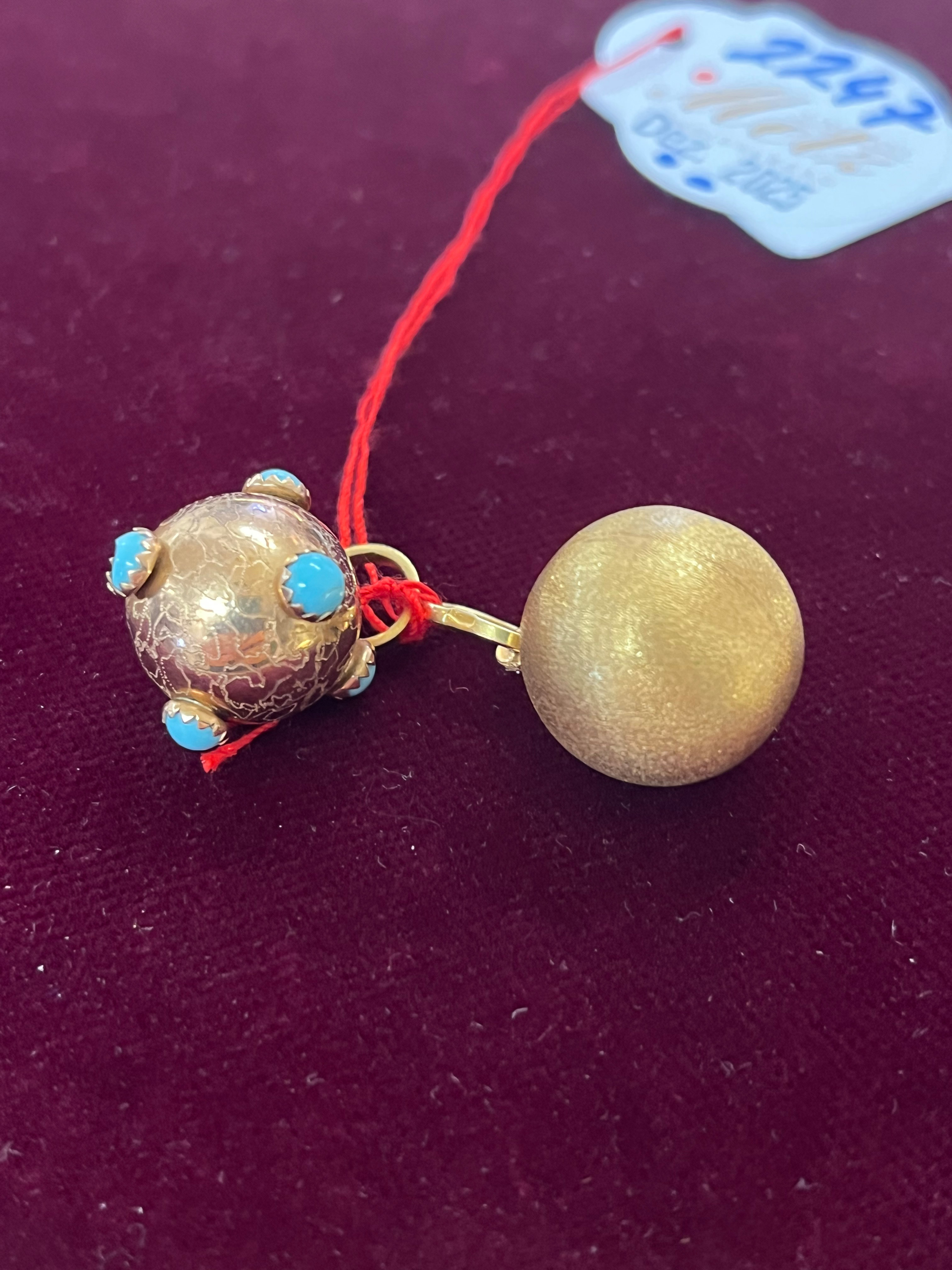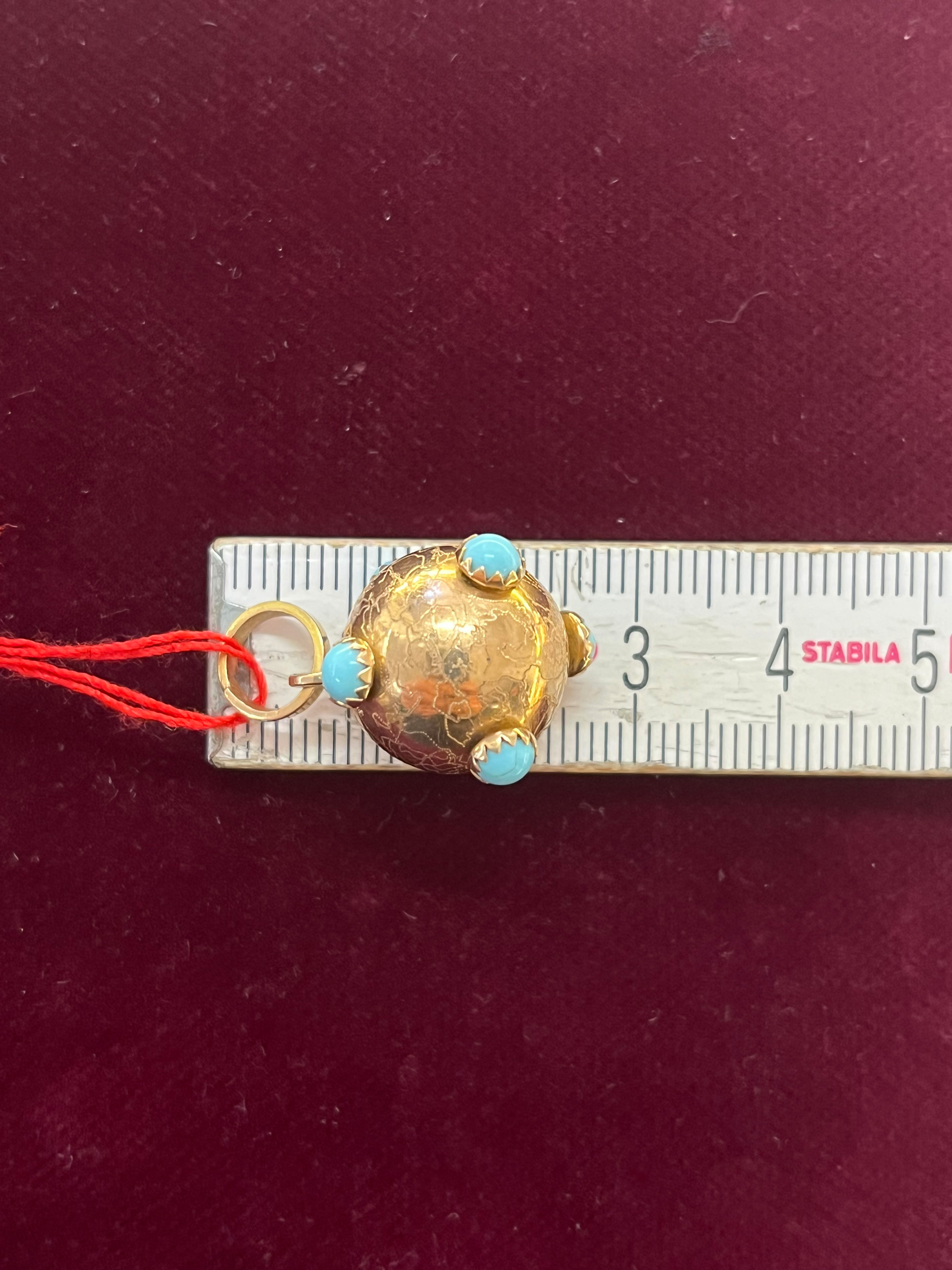 - Katalog-Nr: 2247Zwei Anhänger. 18 kt Gold, besetzt mit Türkis, Gesamtgewicht ca. 8,55 g.o.L.