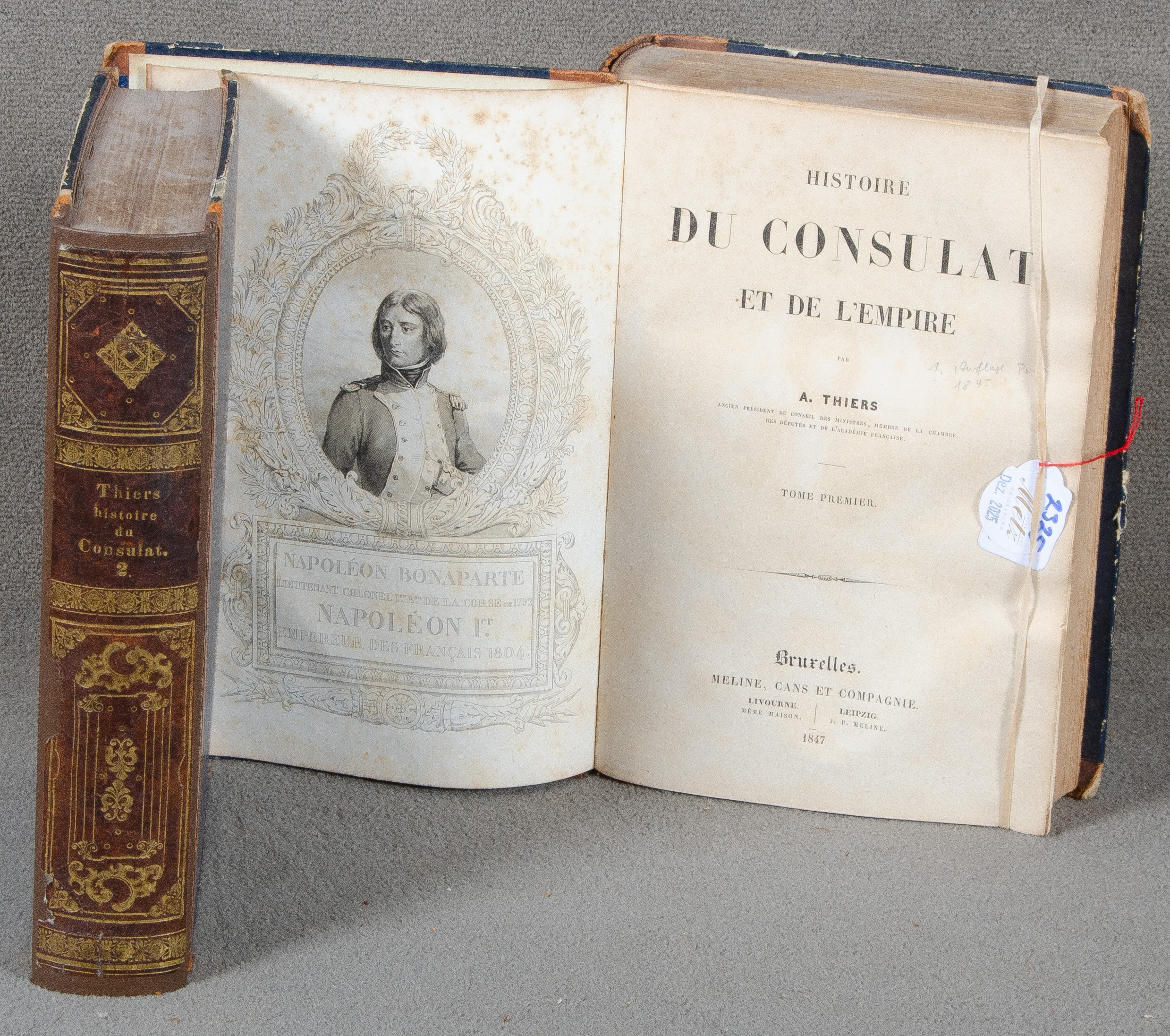 - Katalog-Nr: 2325A. Thiers, „Histoire du Consulat“, zwei Bde., Halbldr., Brüssel 1847.o.L.