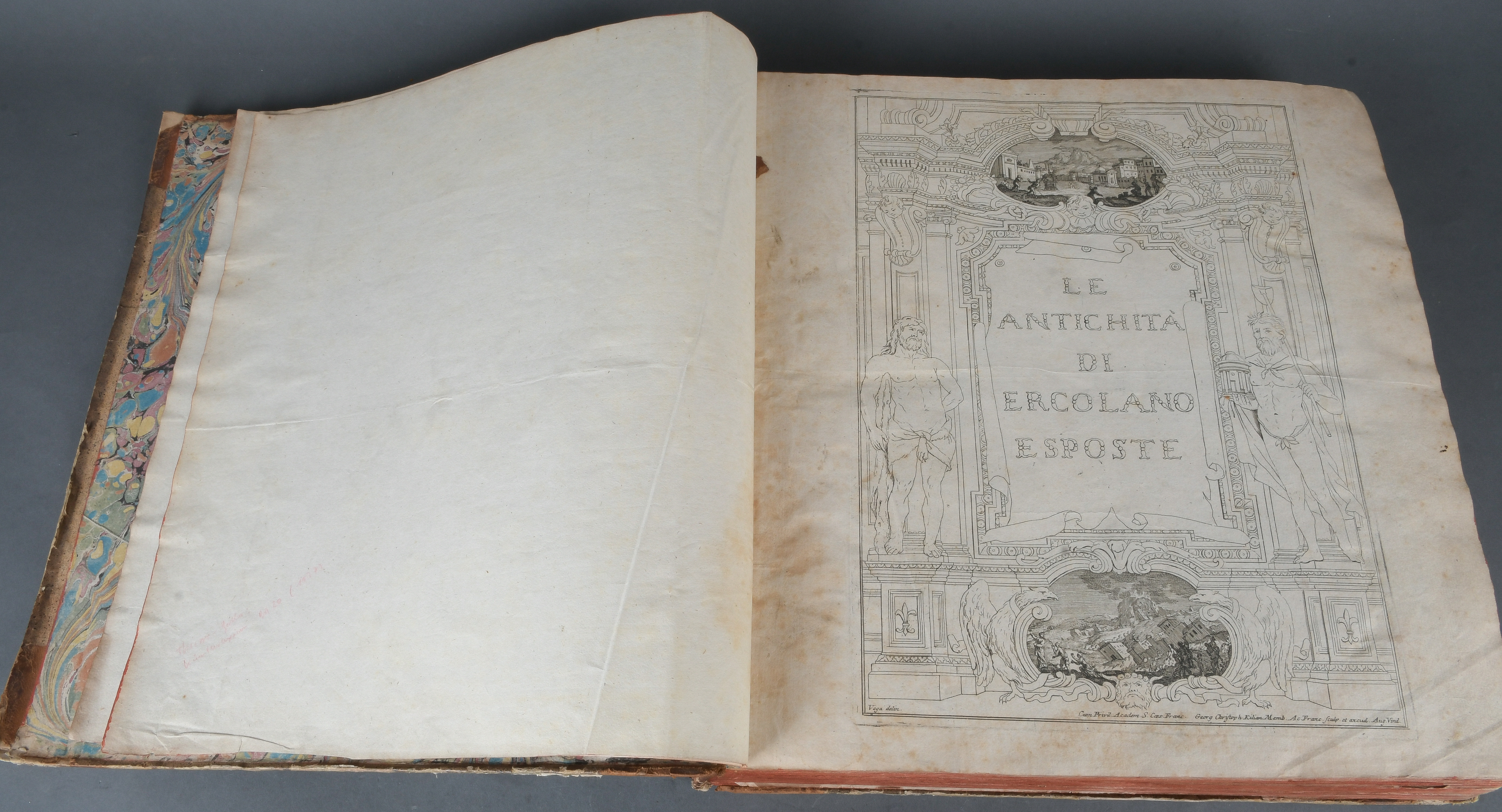 - Katalog-Nr: 2350Georg Christian Kilian, „Le Antichita di Ercolano Esposte“, Halbldr., o.O. o.J. (seit 1738). (besch. / Gebrauchsspuren)o.L.
