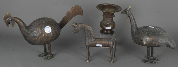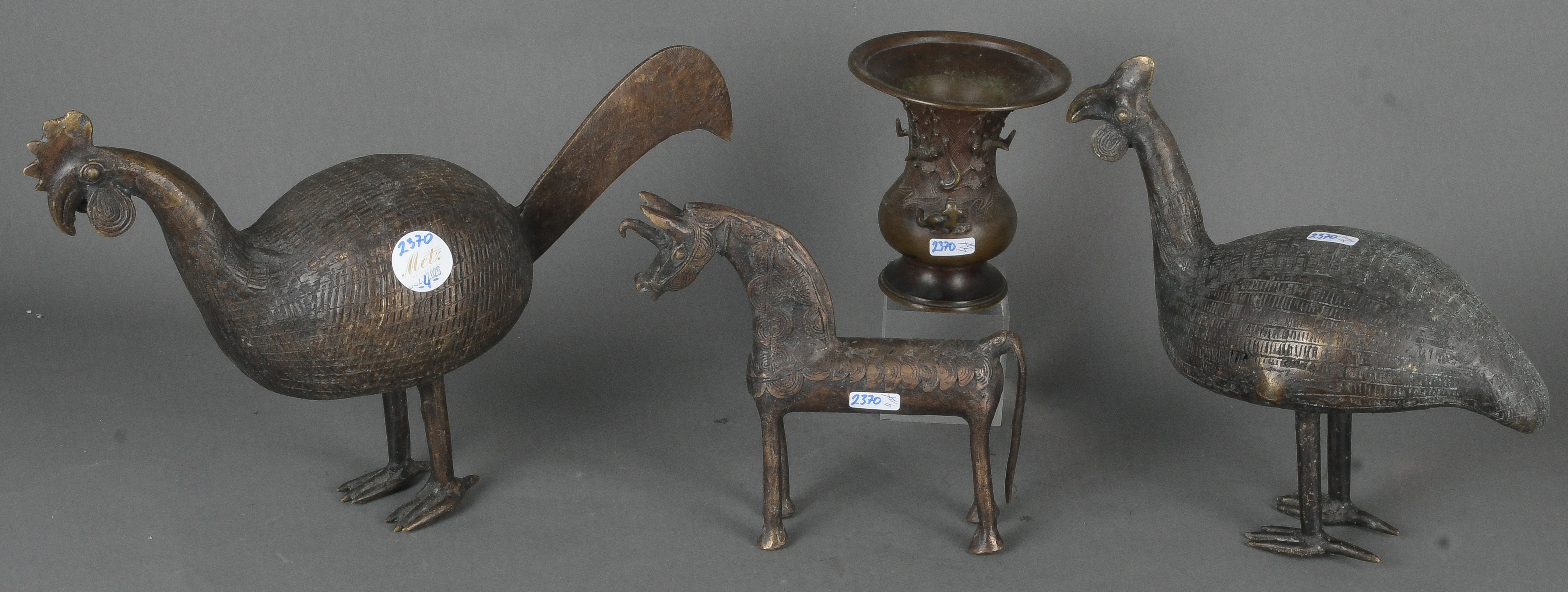 - Katalog-Nr: 2370Drei Tierfiguren und eine Vase. Asien. Bronze, H=13,5 bis 26 cm.o.L.