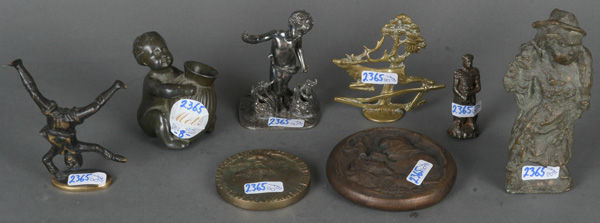 - Katalog-Nr: 2365Sechs Figuren und zwei Medaillen. Bronze / Metall, H=6 bis 14 cm, D=6 bis 8 cm.o.L.