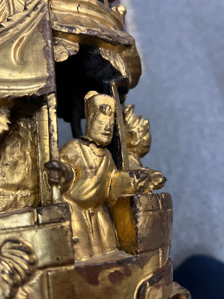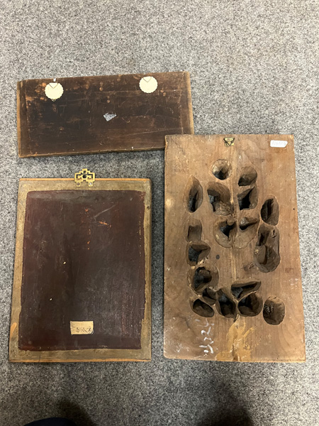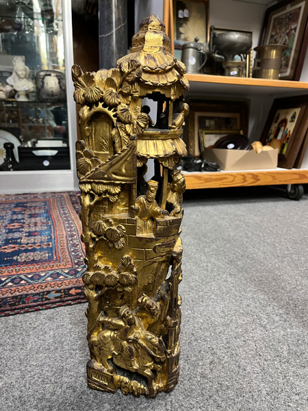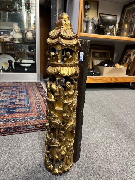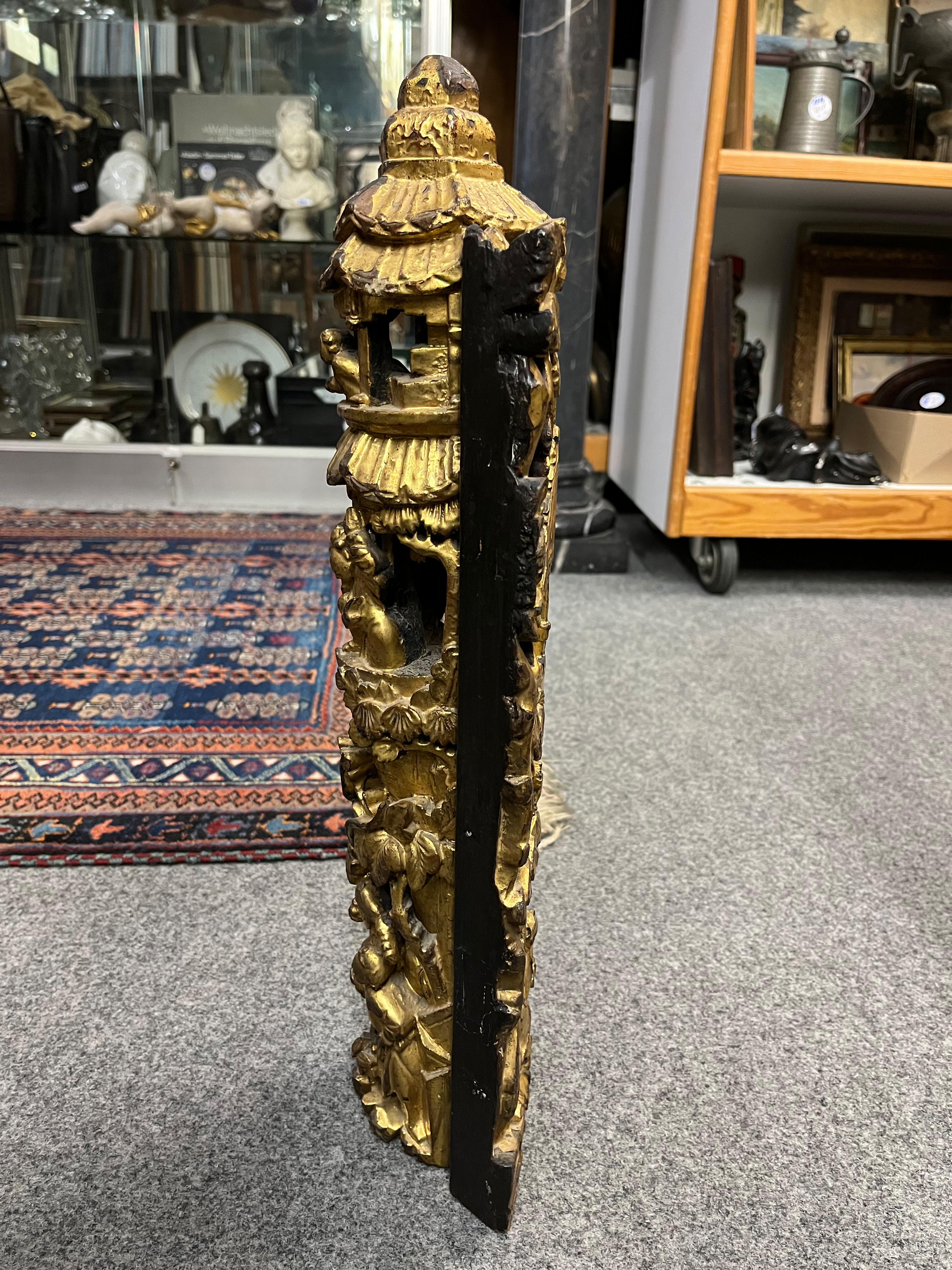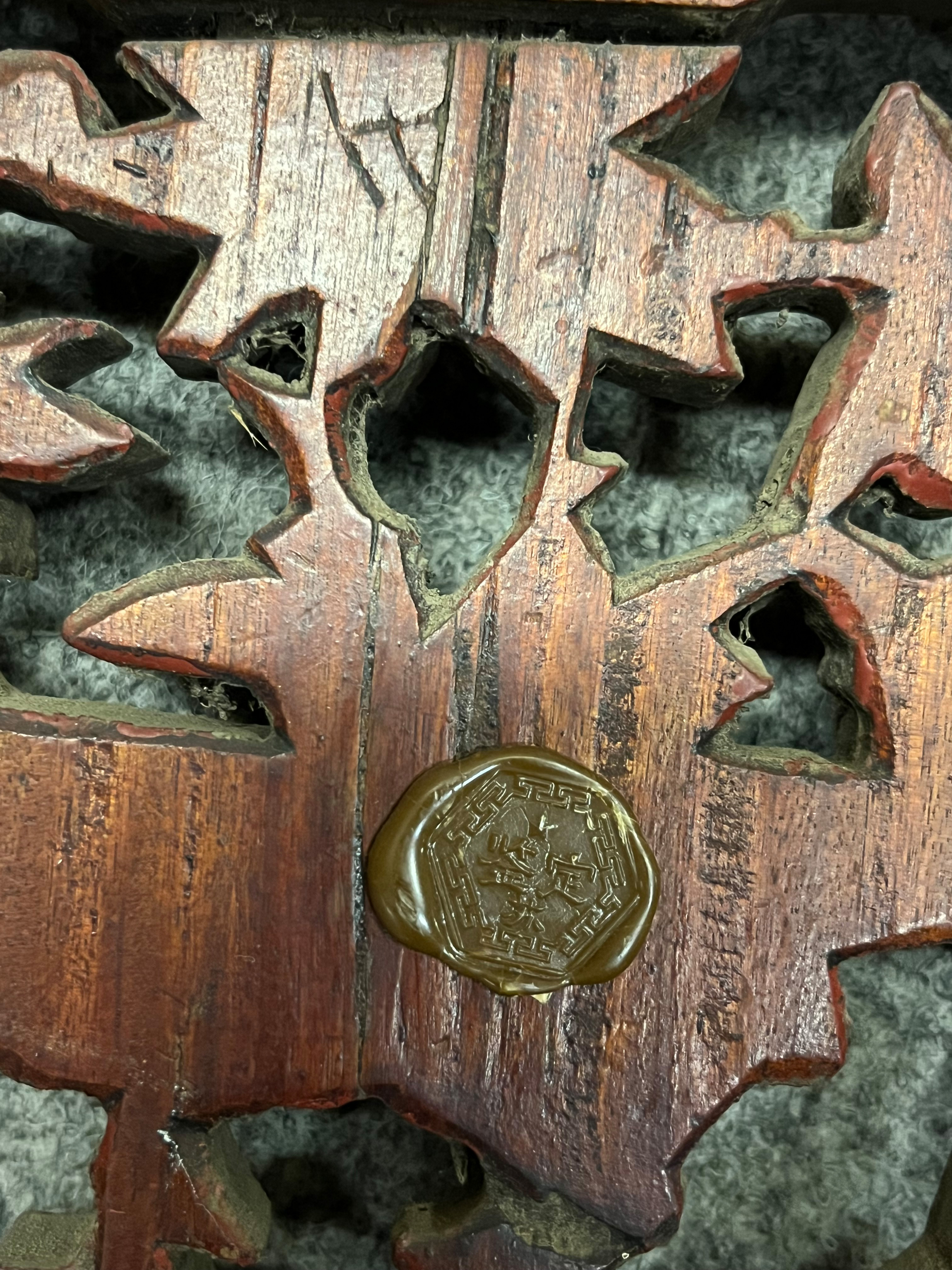 - Katalog-Nr: 2477Sechs Reliefs. Asien. Massivholz, geschnitzt mit Blumen, Figuren und Tieren, teilw. rot lackiert und gold gefasst, 13 x 12 bis 51 x 75 cm. (besch.)o.L.