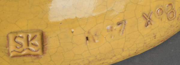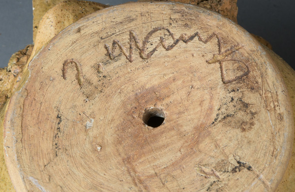 - Katalog-Nr: 2483Jörg von Manz (1939-1997) / wohl R. Ludwig (deutscher Keramiker des 20. Jhs.). Sechs unterschiedliche Keramikobjekte, u.a. Büste, Reiter, Leuchter und Katze auf Rollen, teilw. farbig glasiert und beschriftet, H=8,5 bis 26 cm.o.L.