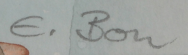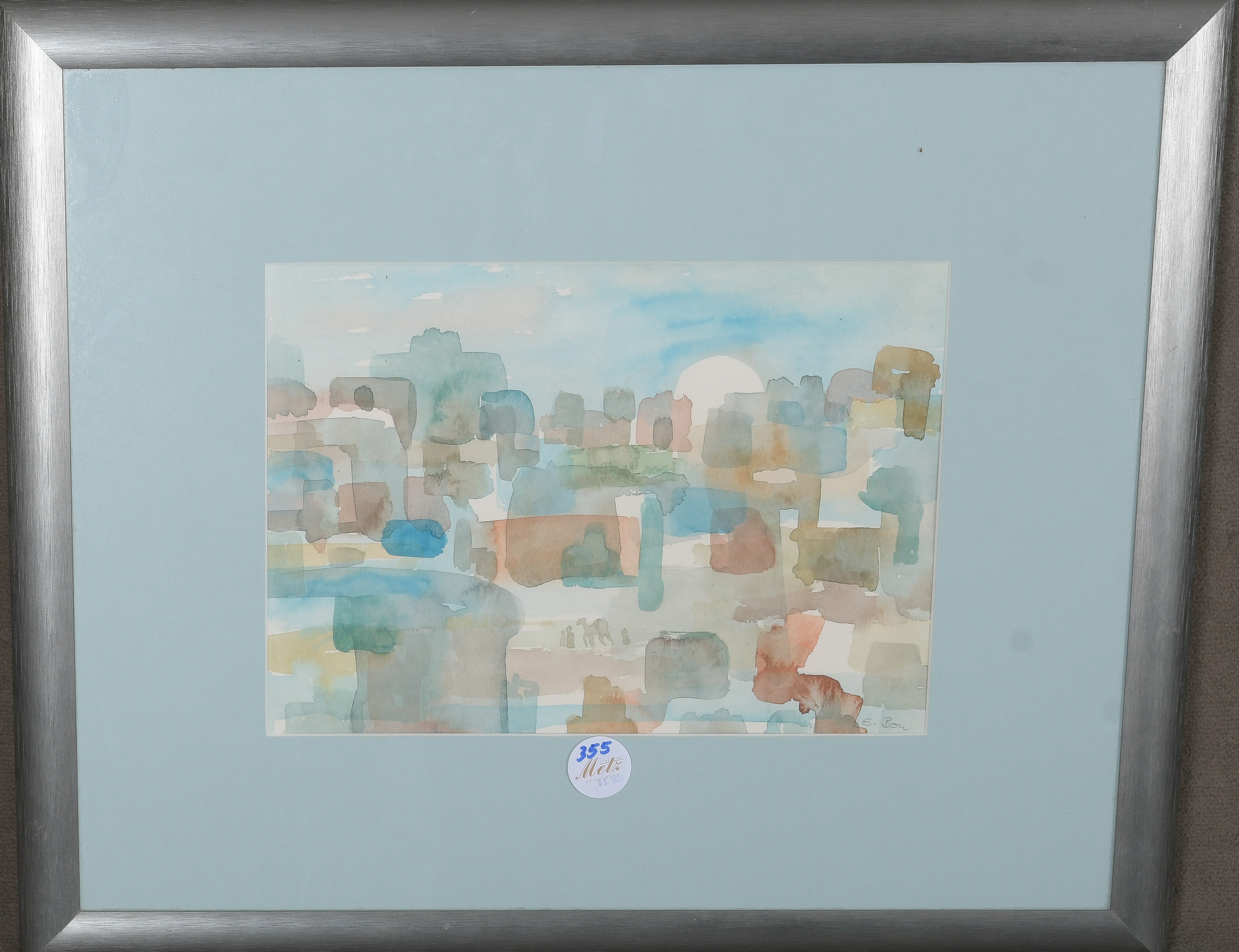 - Katalog-Nr: 355Erika Bouchareb (Malerin des 20. Jhs.). Stadtansicht. Aquarell/Papier, re./u./sign., mit Passepartout hi./Gl. gerahmt, 21,5 x 31 cm.o.L.