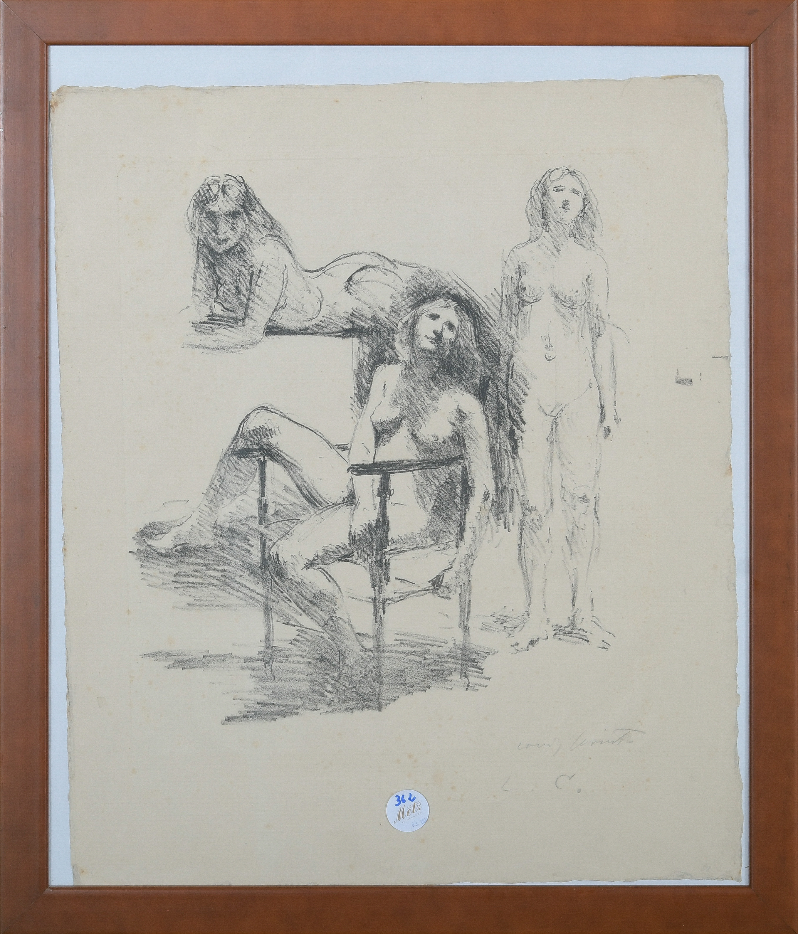 - Katalog-Nr: 362Lovis Corinth (1858-1925). „Weibliche Aktstudien“. Lithographie, re./u./sign., hi./Gl. gerahmt, 83,5 x 33 cm. Mit Rechnung der USB ART CONSULT über EUR 950,00 vom 19.07.2008.o.L.