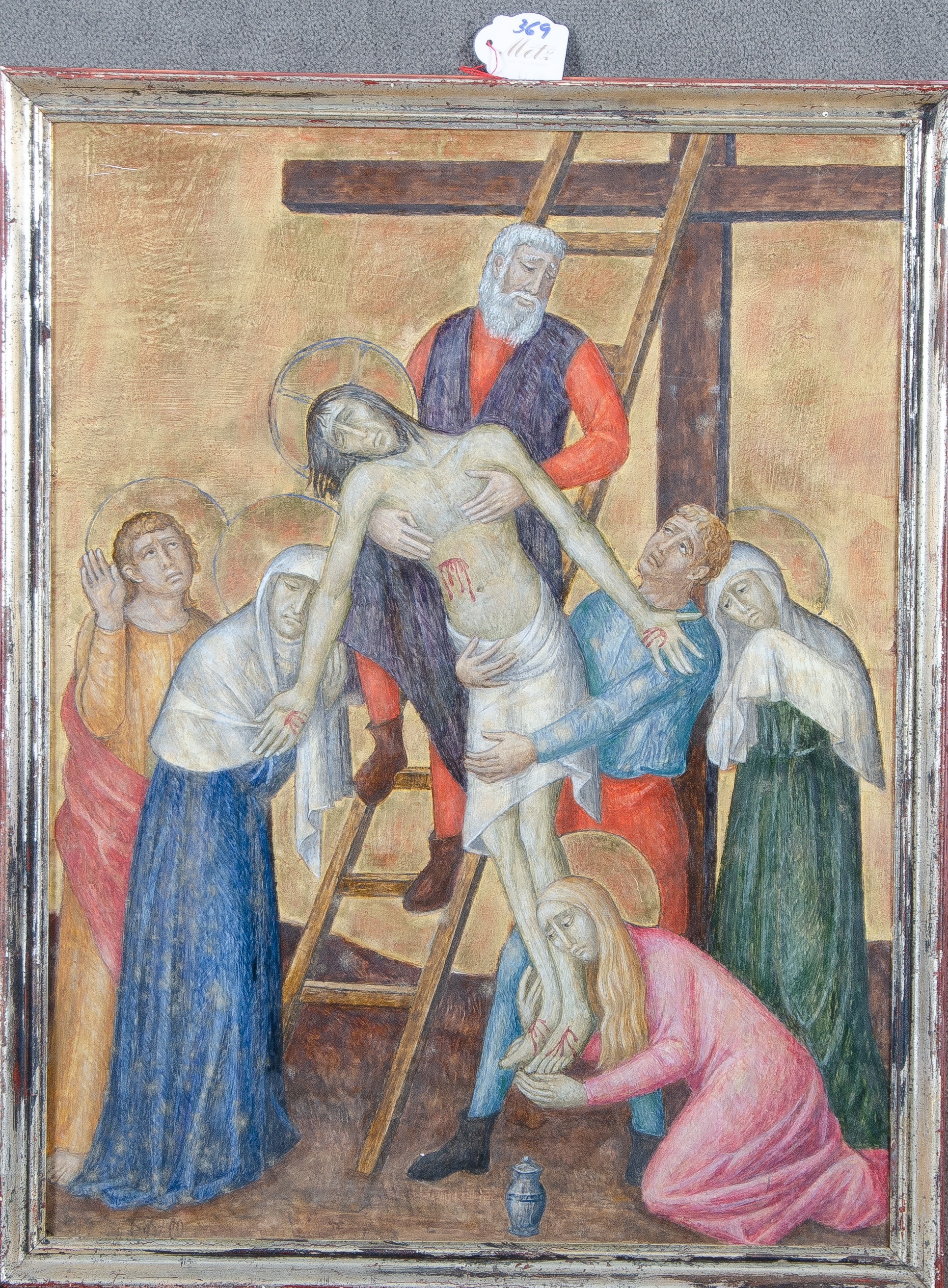 - Katalog-Nr: 369Franz Dell (1899-1982). Kreuzabnahme. Mischtechnik, li./u./monogr./dat. (19)80, gerahmt, 48 x 37 cm.o.L.