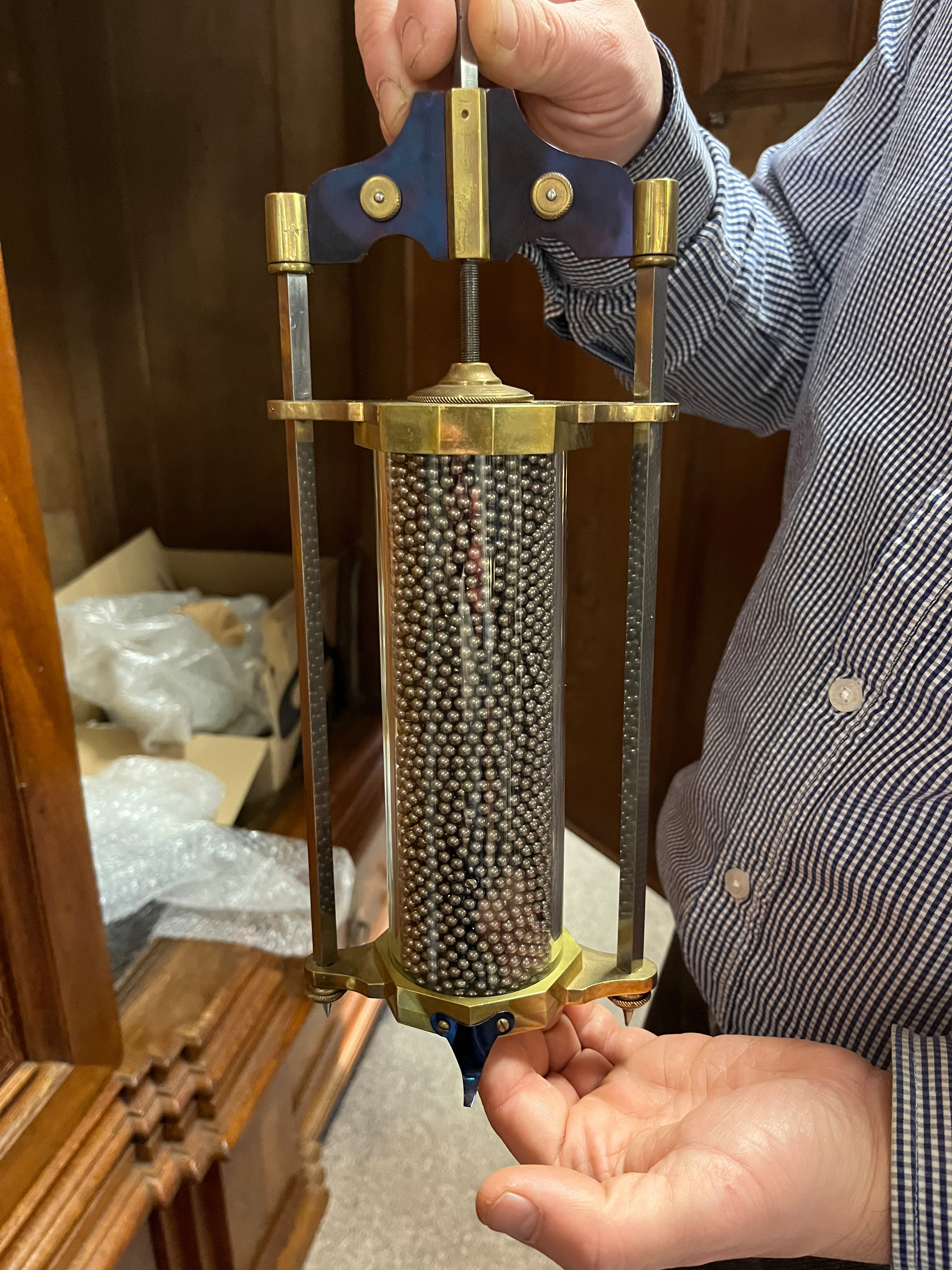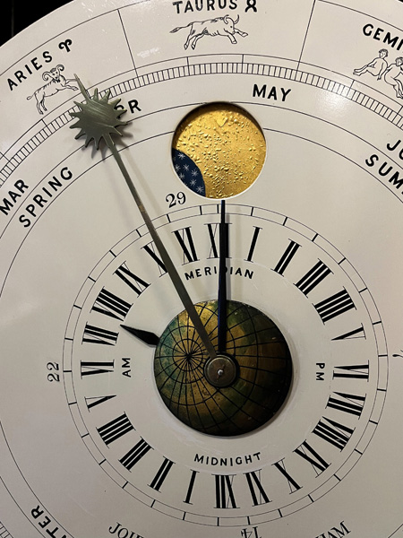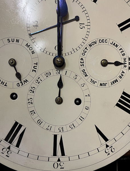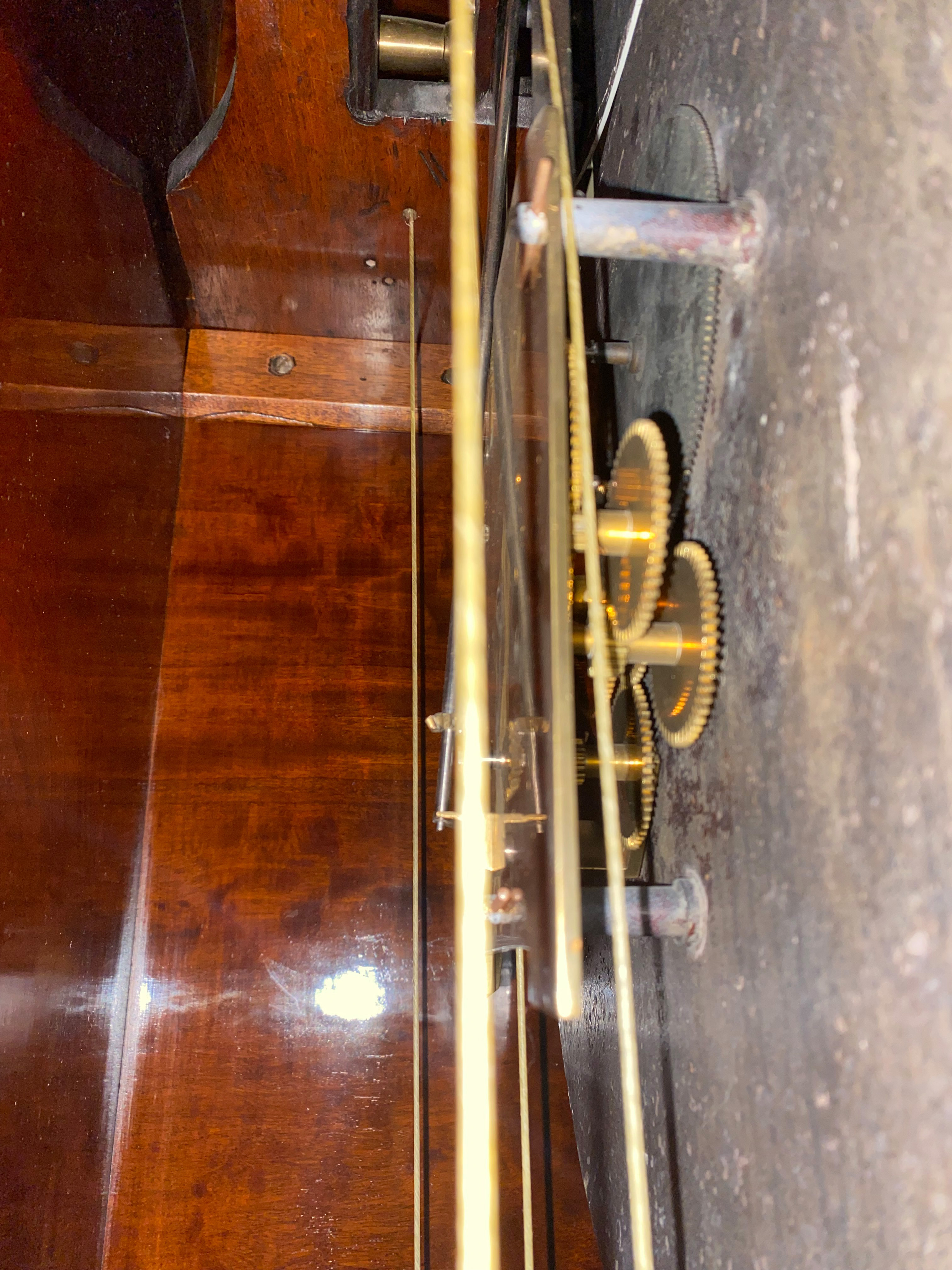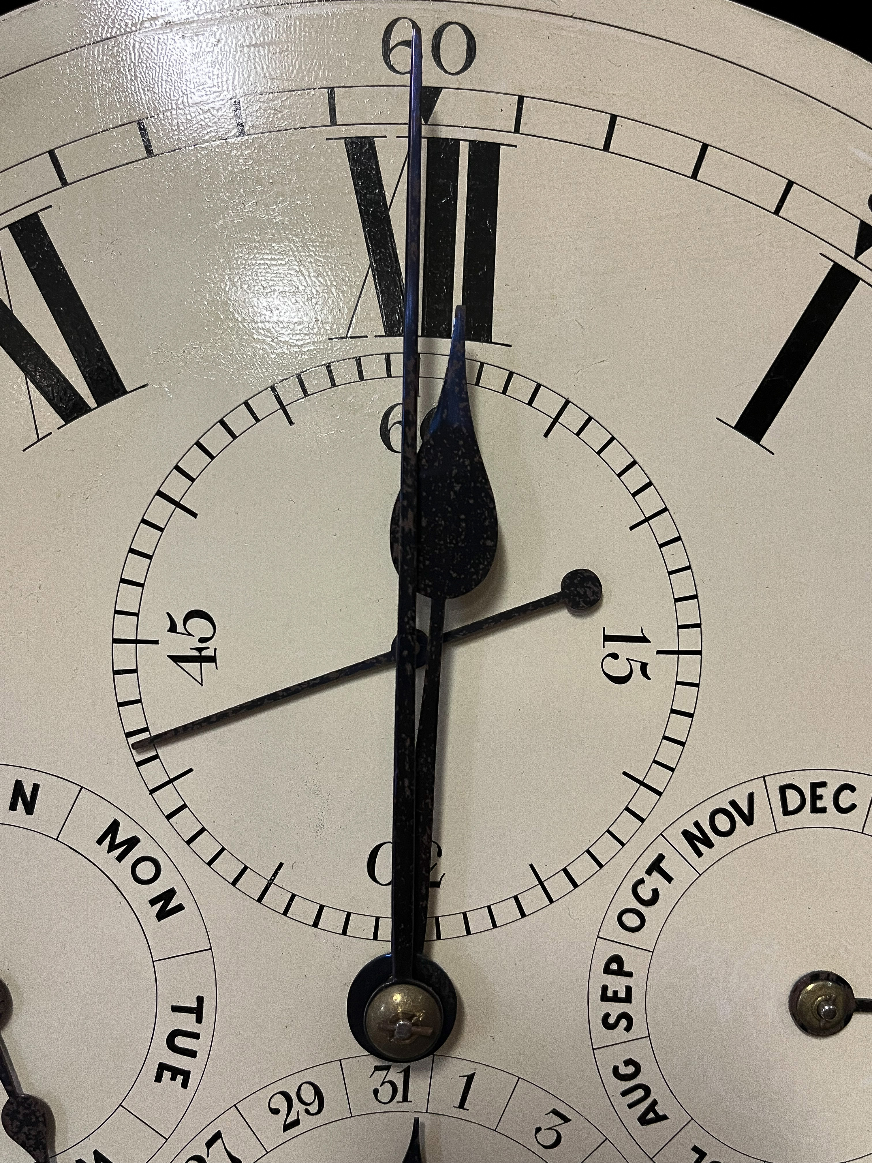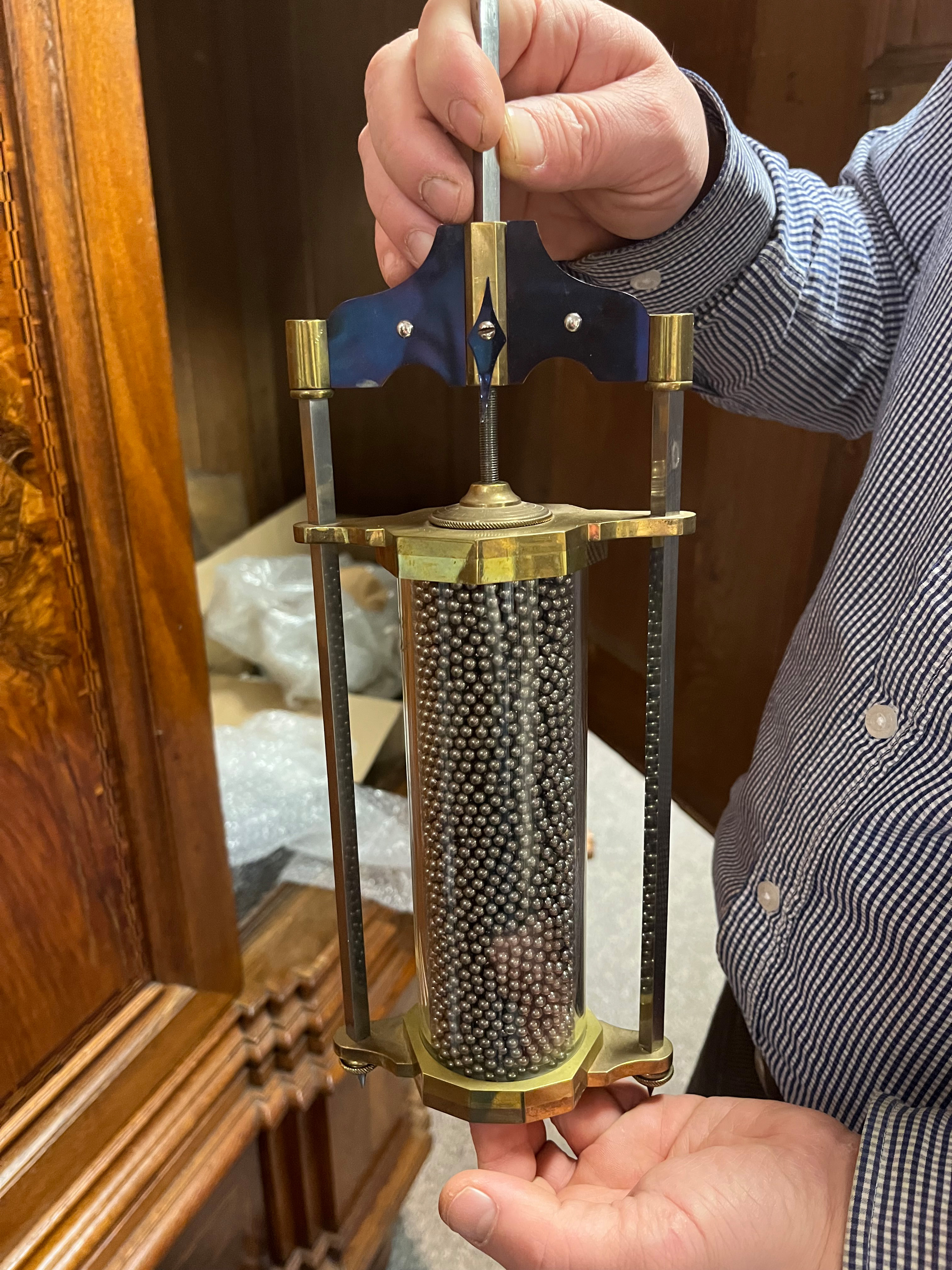 - Katalog-Nr: 505Musealer Präzisionsregulator-Monatsläufer. Birmingham, Meister John Woodwiss dat. 1862. Mahagoni furniert, teilw. massiv und geschnitzt. Hochrechteckig, auf Kugelfüßen mit quaderförmigem Sockel und verglastem, gewölbtem Uhrenkasten mit verschlungenen Blättern, Muschelverzierungen und spiralförmigen Säulen. Der Regulator weist insgesamt 11 Funktionen auf: Das obere Ziffernblatt mit regulärer Minuten- und Stundenanzeige, plus separate Anzeigen für Sekunden, Datum, Wochen- und Monatstag. Das untere Ziffernblatt mit äußerem jährlichen Kalenderring (mit Jahreszeiten und Tierkreiszeichen), plus separate Anzeigen für Mondphase und -daten, Tages- und Nachtanzeige und eine separate Globusanzeige, sign./dat. Effektive 5-Säulen-Drehung, mit träger Hemmung, verzierter Drehscheibe, Quecksilberpendel mit Drehspannung und kristallenem Glas, doppeltem Gewichtlaufwerk mit gleichbleibender Energie, 5-rädiges Laufwerk mit großen Getriebezahnrädern und 6-zackigen Zahnrädern, durchgehender Schlag zur Stunde mit einem Gong und zur Viertelstunde mit einem Klingeln, Gestänge mit Getriebegangschaltung zum Kalendermechanismus, H=225 cm, B=67 cm, T=26,5 cm. Provenienz: Richard Redding, Zürich SFR 45.000,00. (Funktion ungeprüft)o.L.