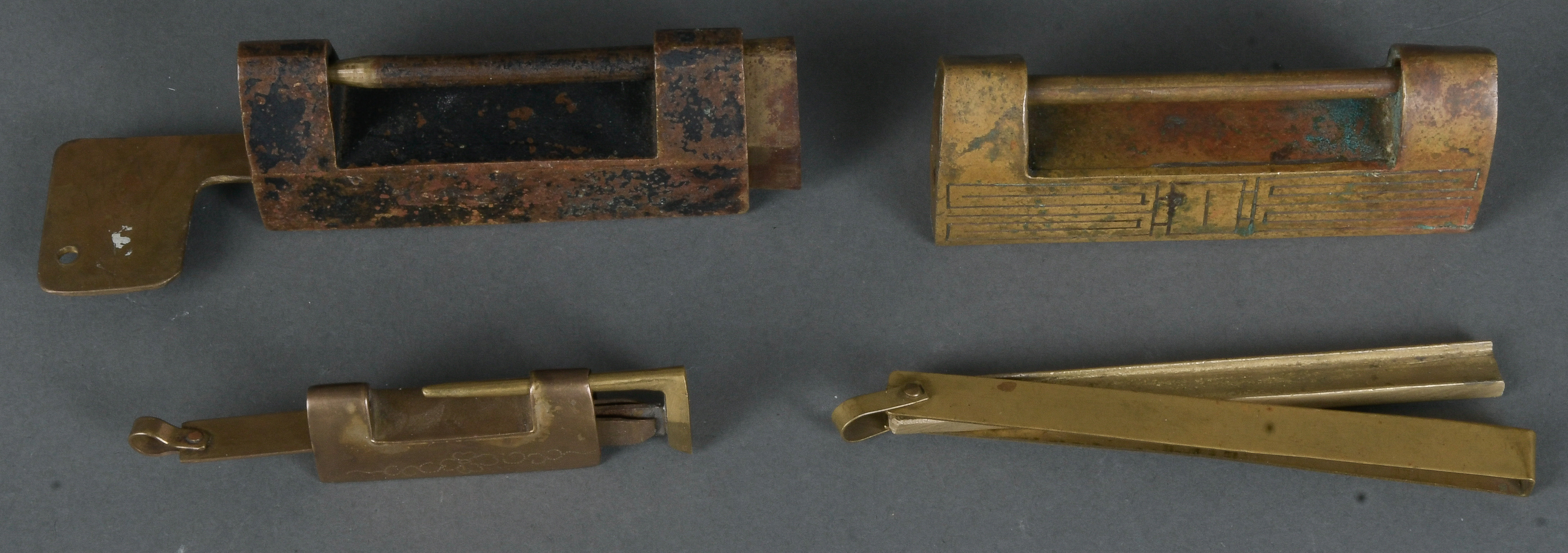 - Katalog-Nr: 523Drei unterschiedliche Vorhängeschlösser mit Steckstiften. Asien. Messing.o.L.