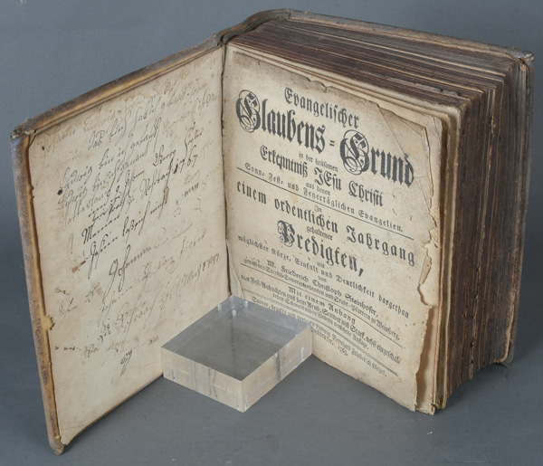 - Katalog-Nr: 511M. Friedrich Christian Steinhofer, „Evangelischer Glaubens=Grund in der heilsamen Erkenntnis Jesu Christi aus denen Sonn= Fest= und Feyertäglichen Evangelien in einem ordentlichen Jahrgang gehaltenen Predigten“, Speyer 1763. (besch.)o.L.