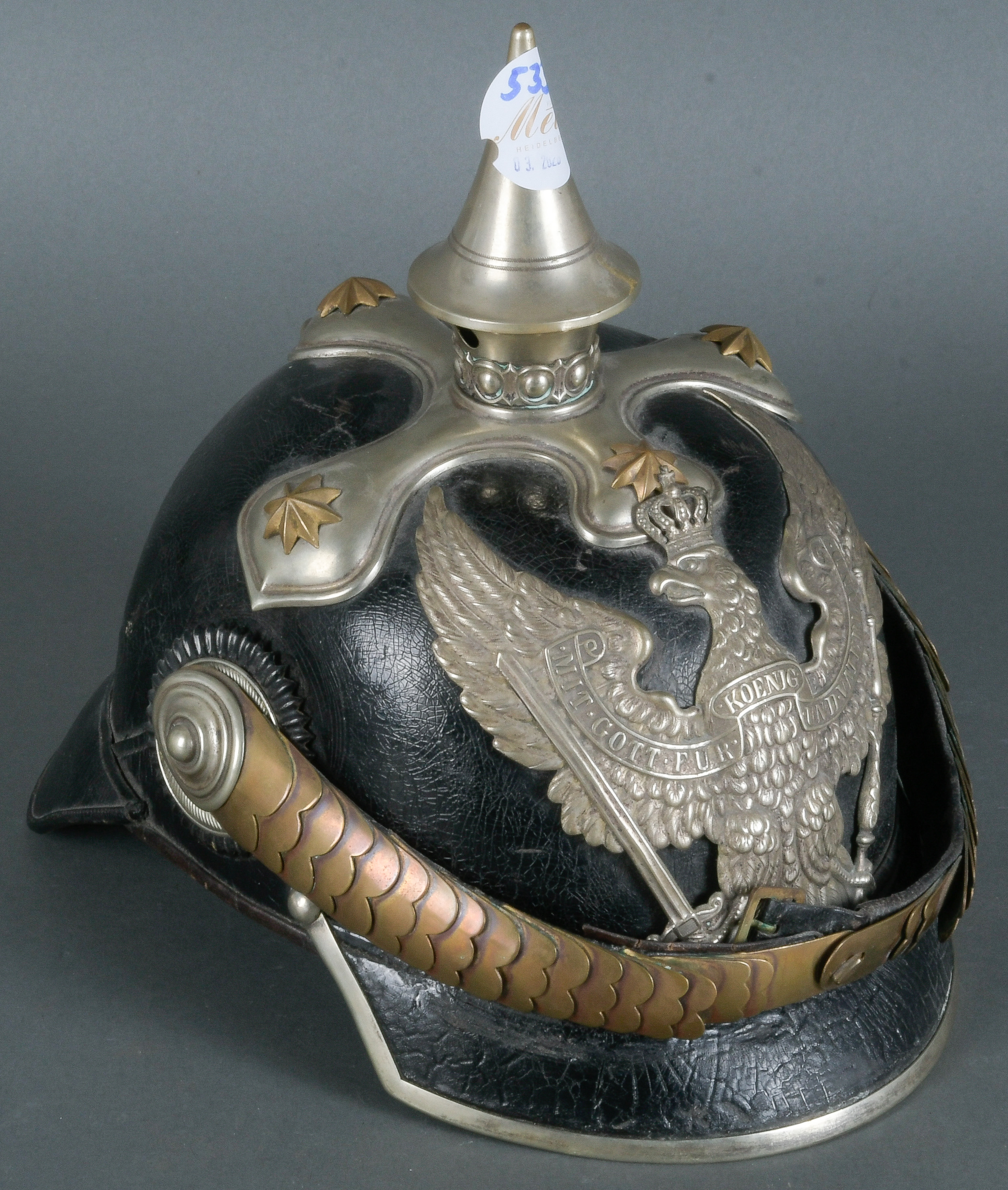 - Katalog-Nr: 533Preußische Pickelhaube eines Dragoner-Offiziers, „M/1871“.o.L.