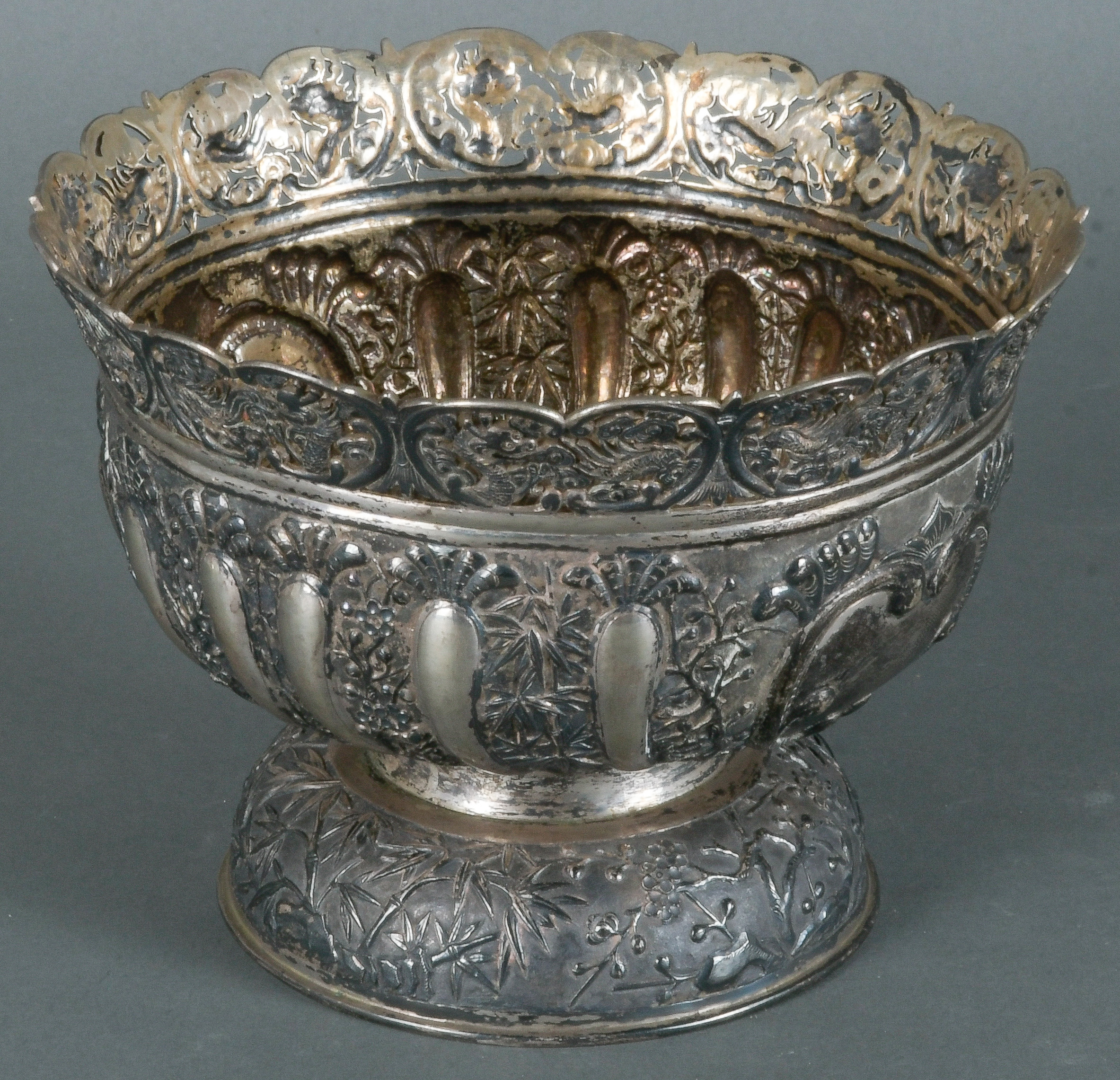 - Katalog-Nr: 538Runder Tafelaufsatz. Japan um 1900. Silber, ca. 536 g, am Boden gepunzt, H=13,6 cm, D=17 cm.o.L.