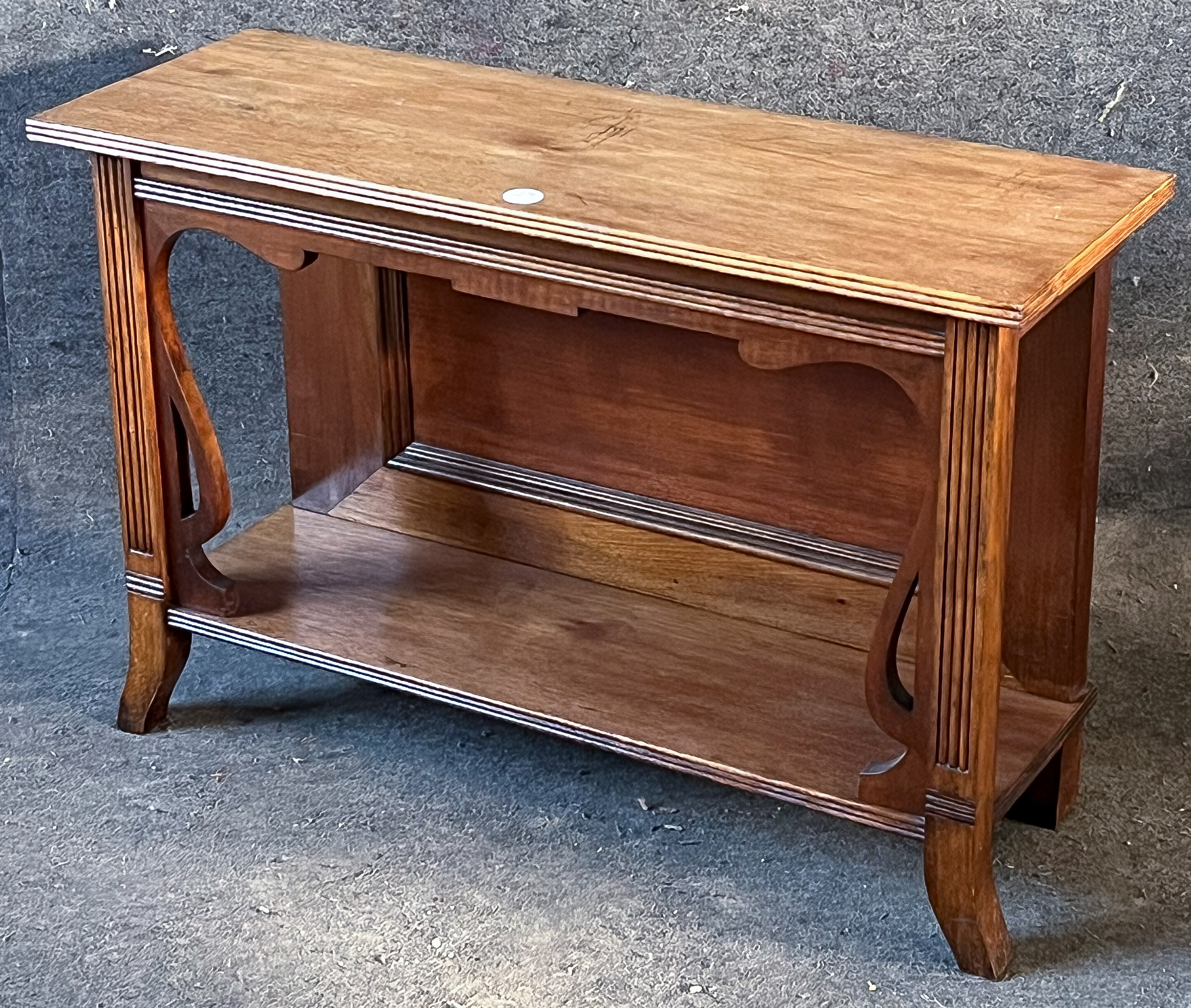 - Katalog-Nr: 682Konsole. Deutsch 20. Jh. Mahagoni furniert, teilw. massiv, auf zwei leicht gebogenen Füßen bzw. Klotzfüßen stehend, Mittelbrett, profilierte Rückwand, überstehende, profilierte Deckplatte mit Rillendekor, H=58 cm, B=87 cm, T=31 cm. >>> Diese Los Nr. kann am Fr., den 10.04.26 (10.00 h bis 12.00 h) in unserem Depot in Mannheim abgeholt werden.o.L.