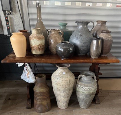 - Katalog-Nr: 69515 Vasen und zwei Krüge. Deutsch / Italien 20. Jh. Glas / Keramik mit diversen Glasuren, H=20 bis 71 cm. >>> Diese Los Nr. kann am Fr., den 10.04.26 (10.00 h bis 12.00 h) in unserem Depot in Mannheim abgeholt werden.o.L.
