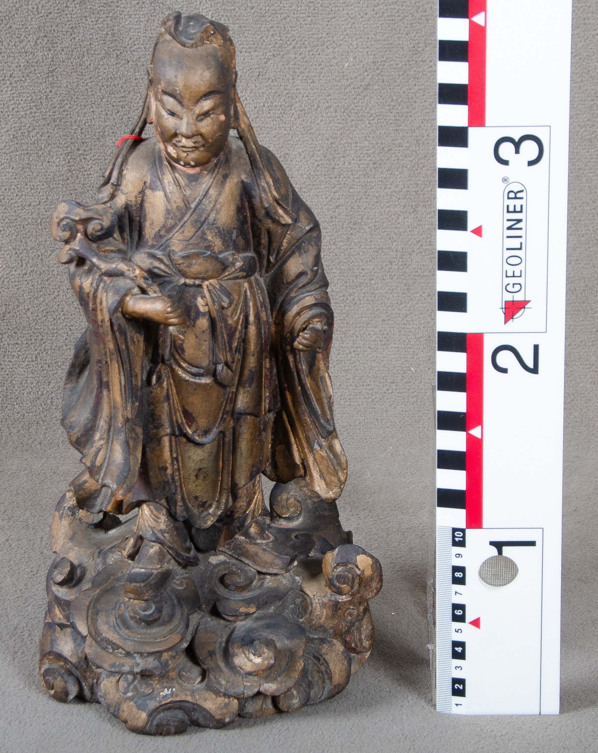 - Katalog-Nr: 768Xiwangmu, die Prinzessin aus dem westlichen Paradies, im Stil der Tang-Epoche 20. Jh. Stehend auf Wolkensockel. Massivholz, geschnitzt, mit Resten alter Vergoldung, H=35 cm.o.L.