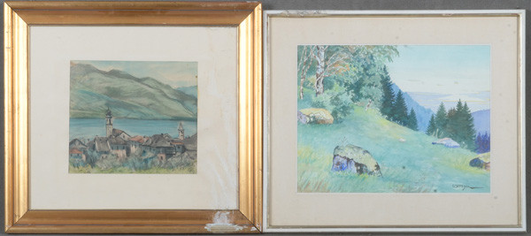 - Katalog-Nr: 760Émile Metthez (1881-1966) u.a. Stadtpanorama / Almansicht. Aquarell / Mischtechnik, re./u./sign. bzw. re./u./monogr. „PF“, je mit Passepartout hi./Gl. gerahmt, 30 x 38,5 / 22,5 x 25,5 cm.o.L.