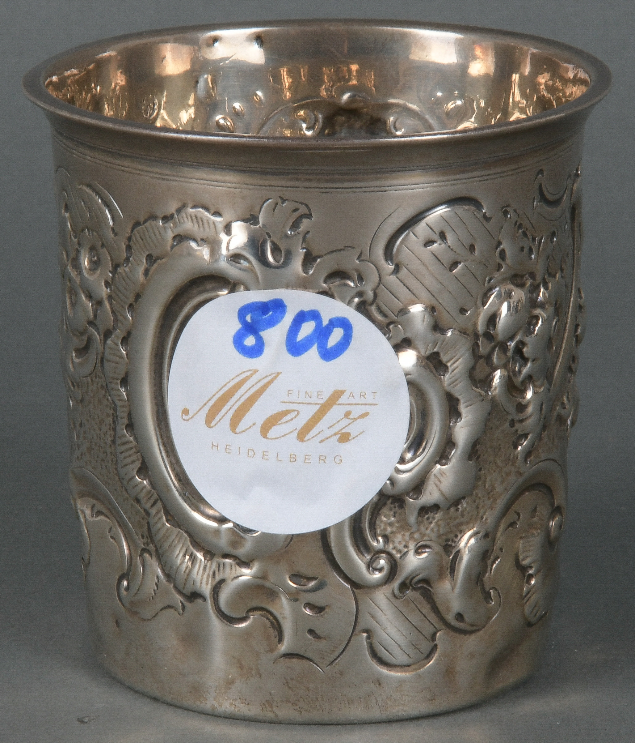 - Katalog-Nr: 794Becher. Deutsch, um 1900. 800er Silber, ca. 208 g, gepunzt, H=11,6 cm.o.L.