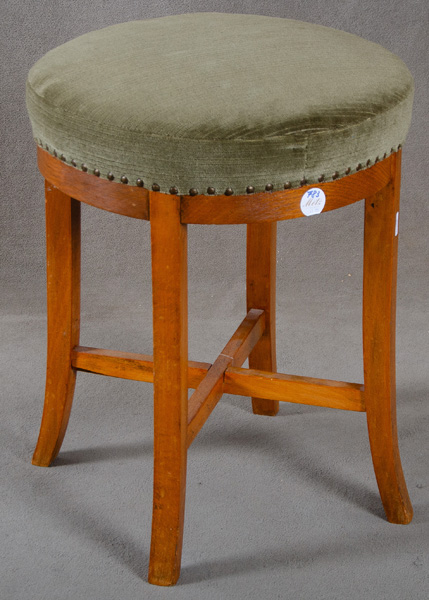 - Katalog-Nr: 783Runder Hocker. Deutsch 20. Jh. Massivholz; mit Säbelbeinen und Kreuzsteg.o.L.