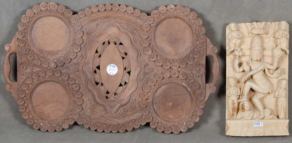 - Katalog-Nr: 799Tablett und Zierelement. Asien. Massivholz, geschnitzt, 31 x 17 / 36 x 59 cm.o.L.