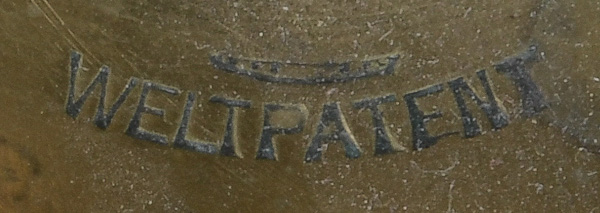 - Katalog-Nr: 832Paar Leuchter. Deutsch um 1900. Messing, beschriftet „Weltpatent“, H=24 cm.o.L.
