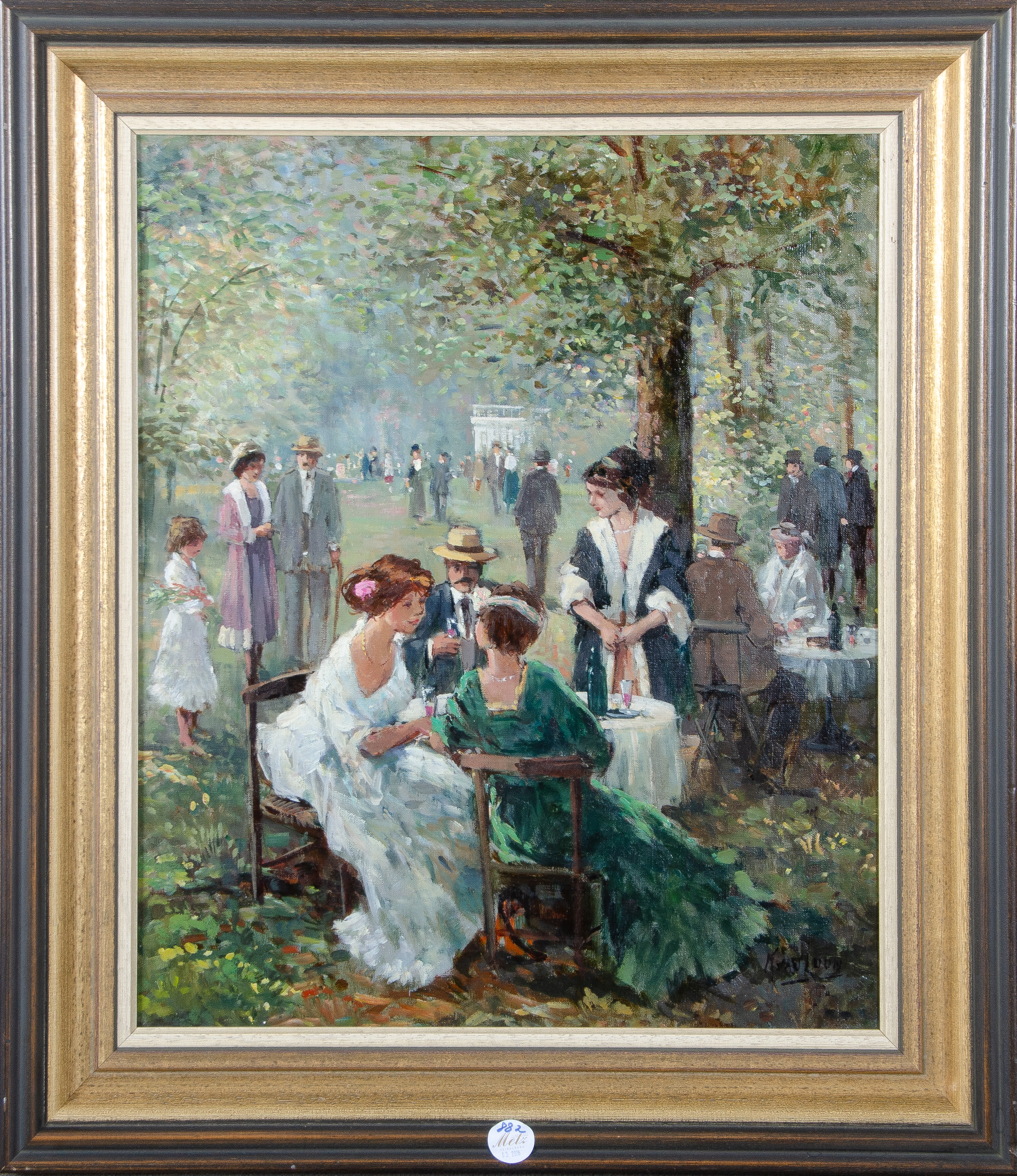 - Katalog-Nr: 882Kees van Loon (1930-2004). Sonntagsgesellschaft in Parklandschaft. Öl/Lw., re./u./sign., gerahmt, 60 x 50,5 cm.o.L.