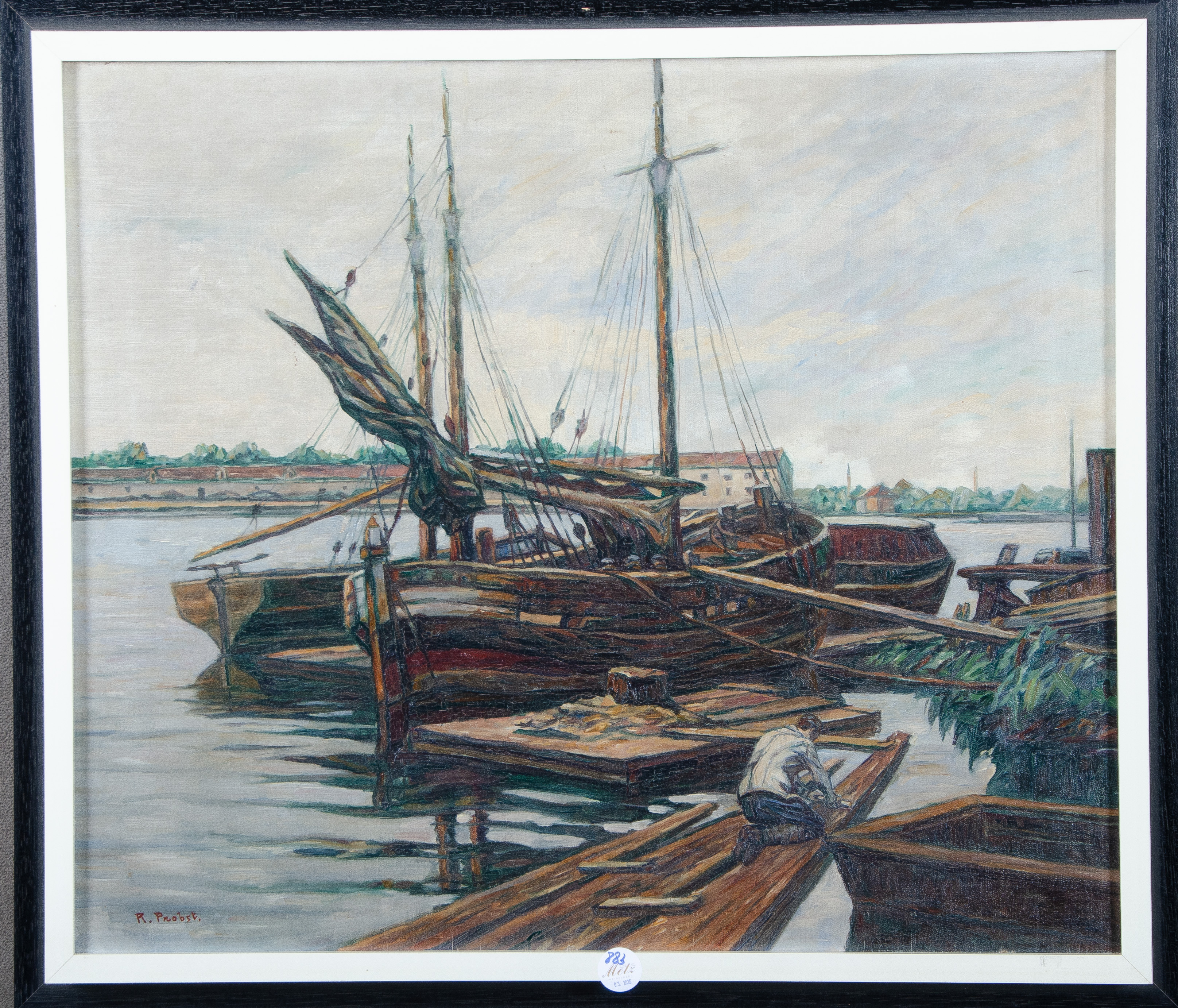 - Katalog-Nr: 883Rudolf Probst (1883-1960). Vertäute Fischerboote. Öl/Lw., li./u./sign., gerahmt, 63 x 72,5 cm.o.L.