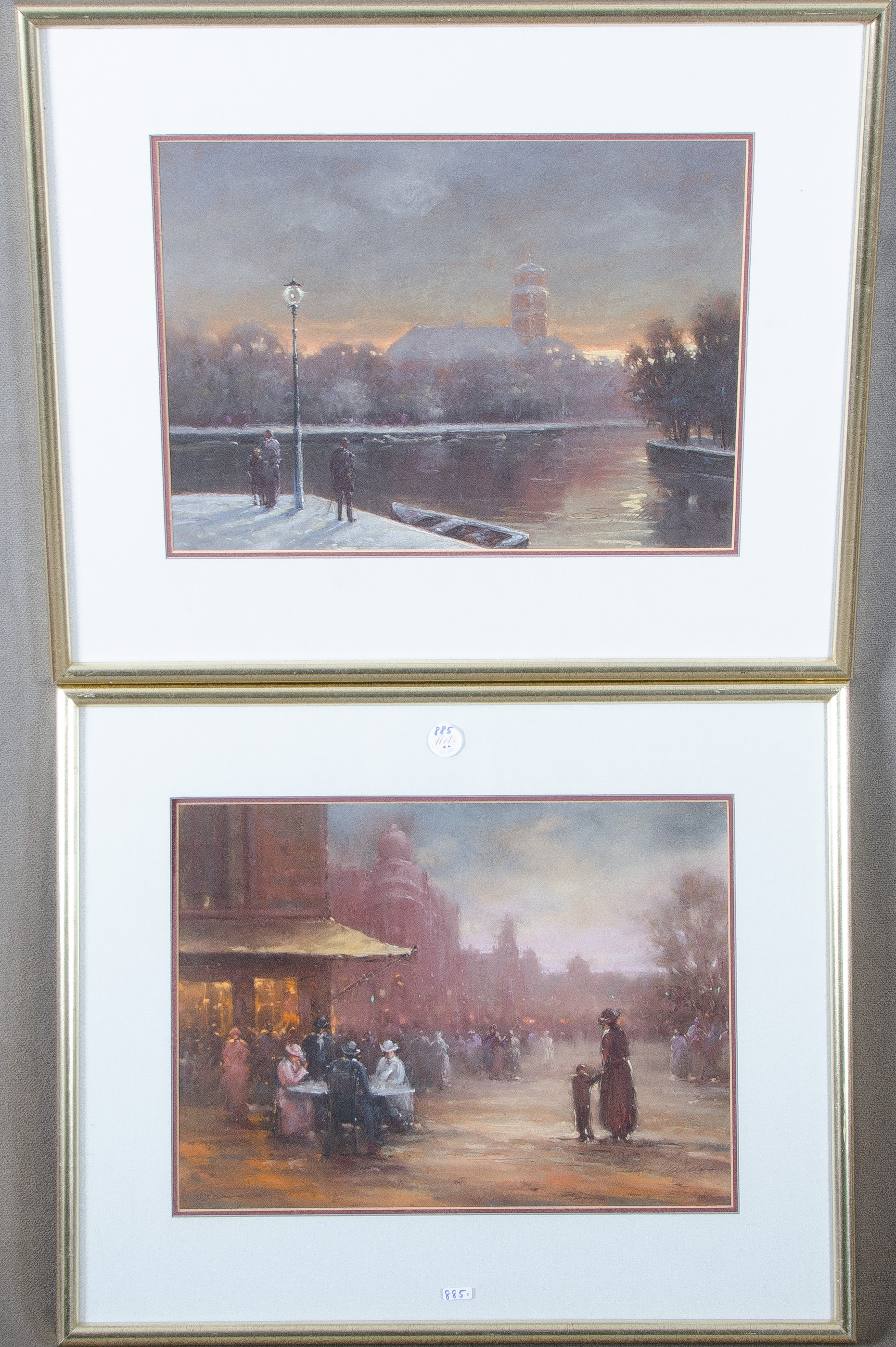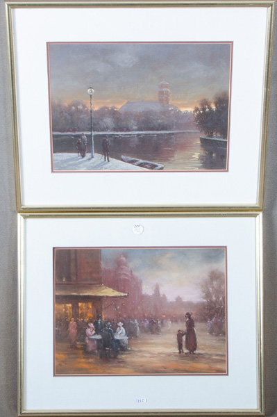 - Katalog-Nr: 885Elena Markov (*1949). Winterlandschaft mit Kirche. Mischtechnik, re./u./sign. (37 / 48 cm; dazu Maler des 20. Jhs. Straßenszene, wohl Paris (37 x 48 cm). Je mit Passepartout hi./Gl. gerahmt.o.L.