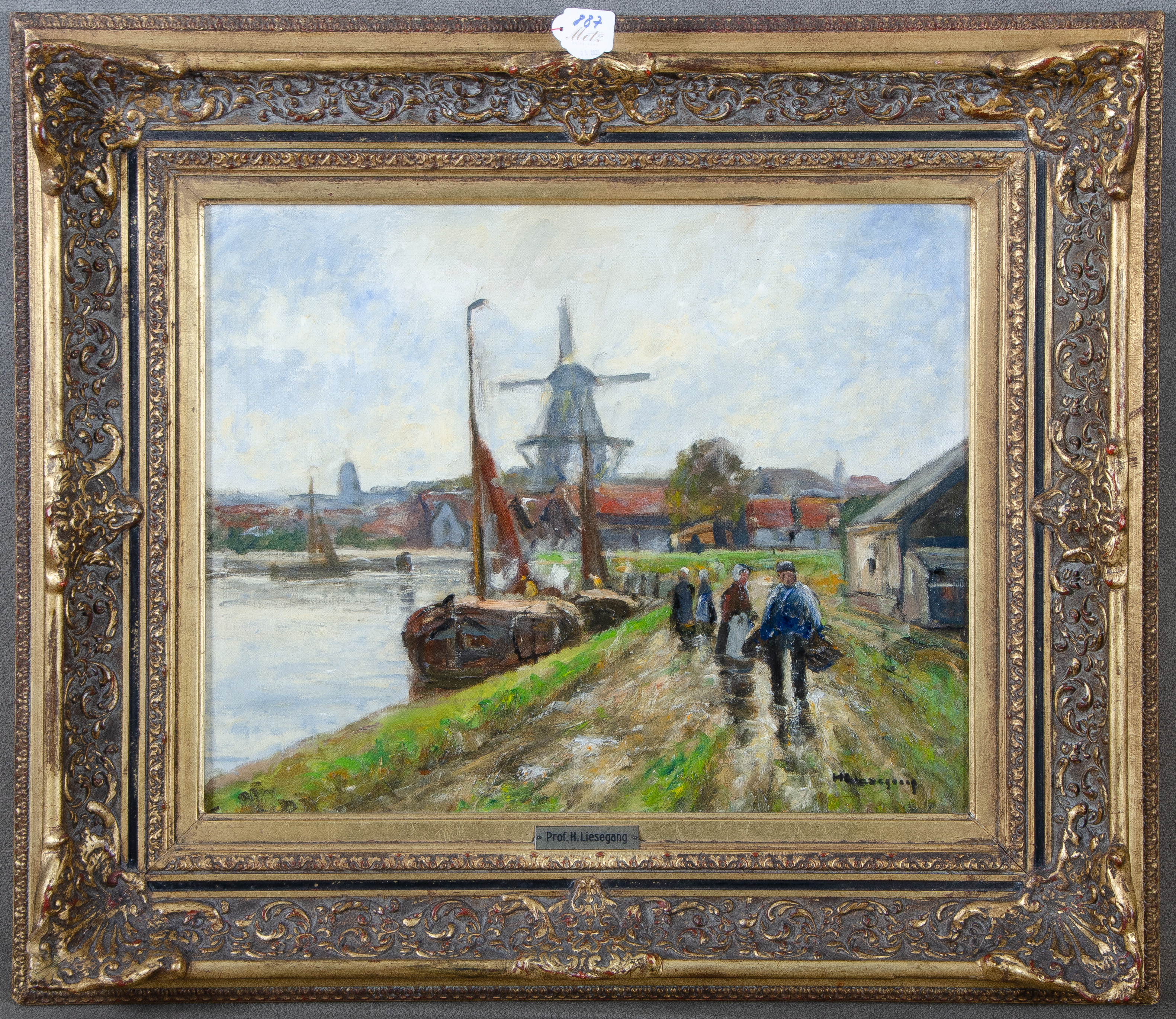 - Katalog-Nr: 887Helmuth Liesegang (1858-1945). Kanalpartie mit Fischerbooten und Personenstaffage. Öl/Lw., re./u./sign., gerahmt, 43 x 50 cm.o.L.