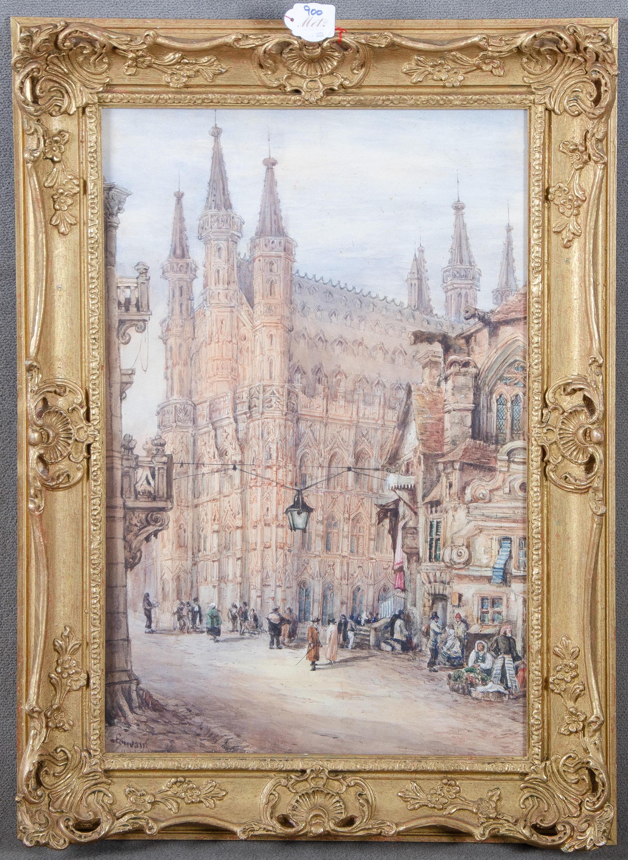 - Katalog-Nr: 900Edward Nevil (act. 1880-1900). Ansicht des Hôtel de Ville von Leuven. Aquarell/Papier, li./u./sign./bez. „Louvain“, hi./Gl. gerahmt, 52 x 34,5 cm.o.L.