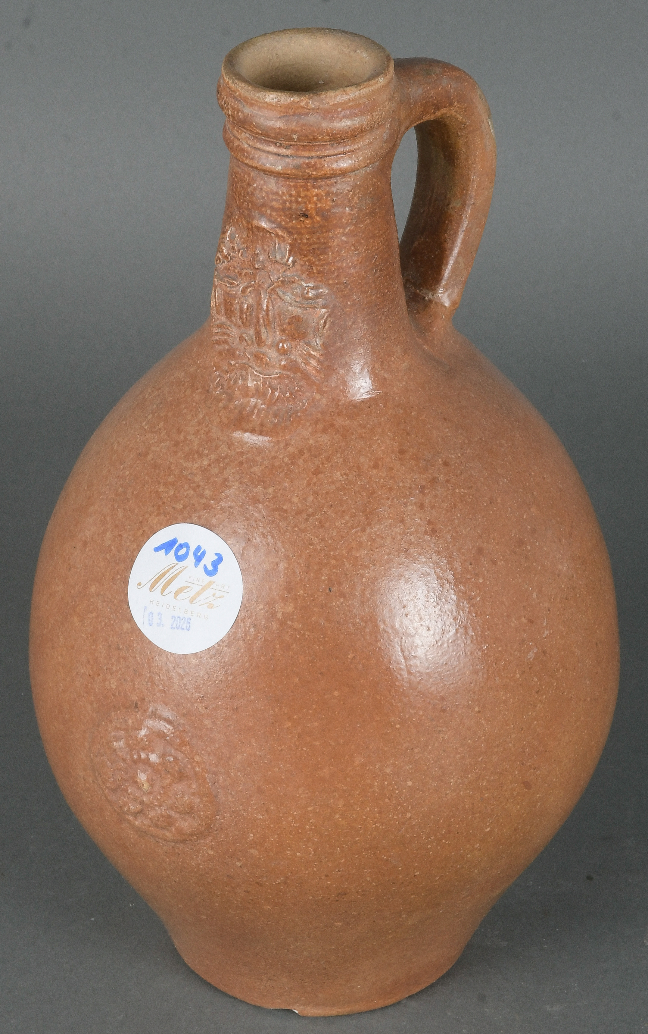 - Katalog-Nr: 1043Bartmannskrug. Frechen. Steinzeug, H=26 cm. (rest.)o.L.