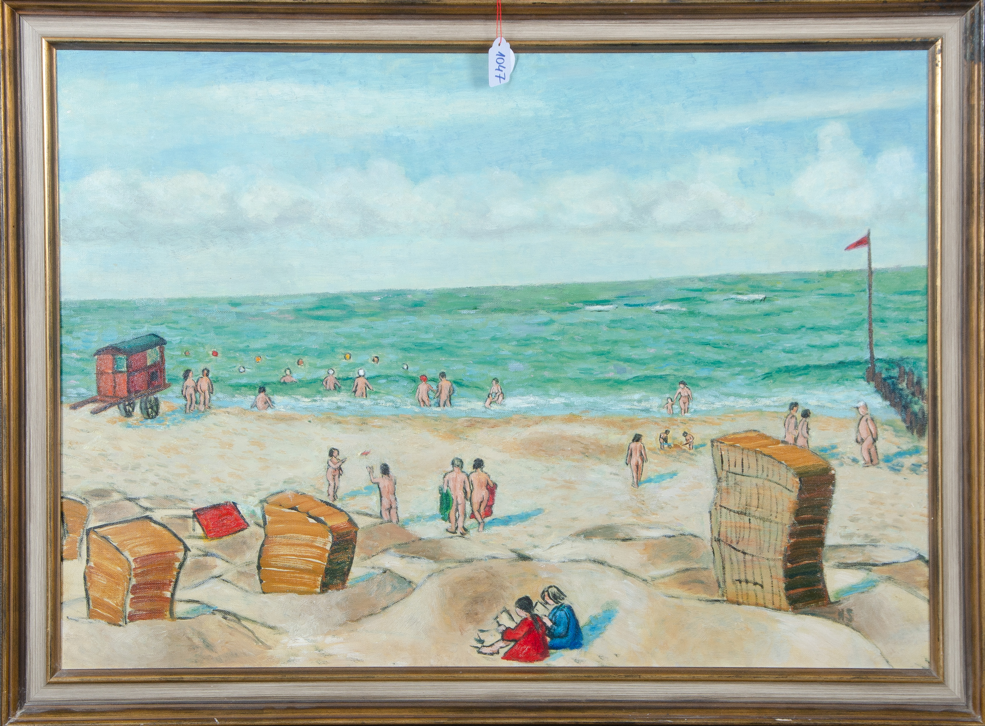 - Katalog-Nr: 1047Maler des 20./21. Jhs. FKK-Strand. Öl/Lw., re./u./monogr. „H.S.“, gerahmt, 50 x 70 cm.o.L.
