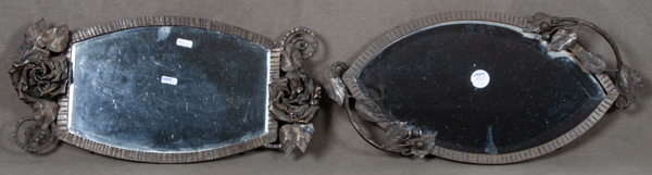 - Katalog-Nr: 1049Zwei Spiegel. Deutsch 20. Jh. Gusseisen, verziert mit Blumen, 26 x 53 / 26 x 51 cm.o.L.