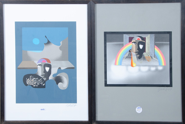 - Katalog-Nr: 1079Peter Anton Gekle (1899-1981) attrib. Zwei abstrakte Kompositionen. Farblithographien, re./u./sign./dat. (19)77 / (19)78, hi./Gl. gerahmt, 29 x 39 / 26 x 32 cm.o.L.