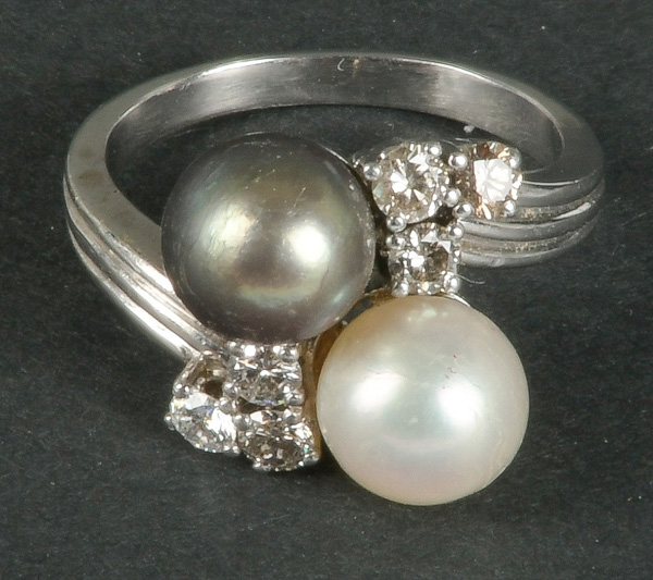 - Katalog-Nr: 1154Damenring. 18 kt Gold, besetzt mit Brillanten, ca. 0,30 ct, und Akoya-Perle, Gesamtgewicht ca. 5,5 g, Ringgröße 49. Die Begutachtungen der verarbeiteten Edelsteine und Diamanten wurden im gefassten Zustand vorgenommen, d.h. unter Vorbehalt einer sachgerechten Graduierung, die nur an ungefassten Steinen erfolgen kann. Dies hat zur Folge, dass die Gewichte (sog. "berechnete Gewichte", d.h. ca.+/- 10 % Abweichung) und Qualitäten (Farbe, Reinheit und Schliff) der Steine nur annähernd angegeben werden können.o.L.
