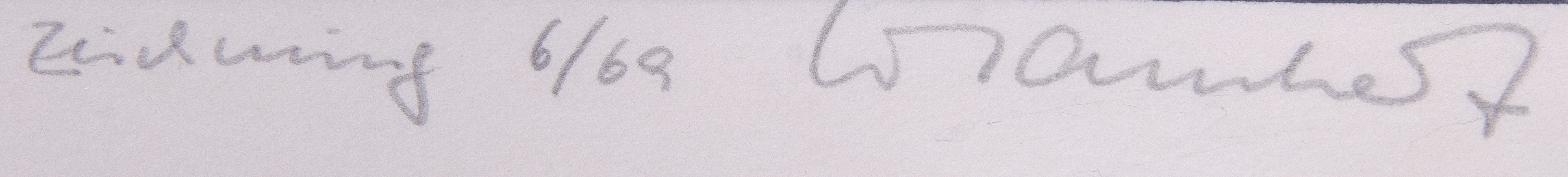 - Katalog-Nr: 1191Willi Baumeister (1889-1955). „Visieren“ (1921). Lithographie, li./u./sign., mit Passepartout hi./Gl. gerahmt, 47 x 34 cm.o.L.