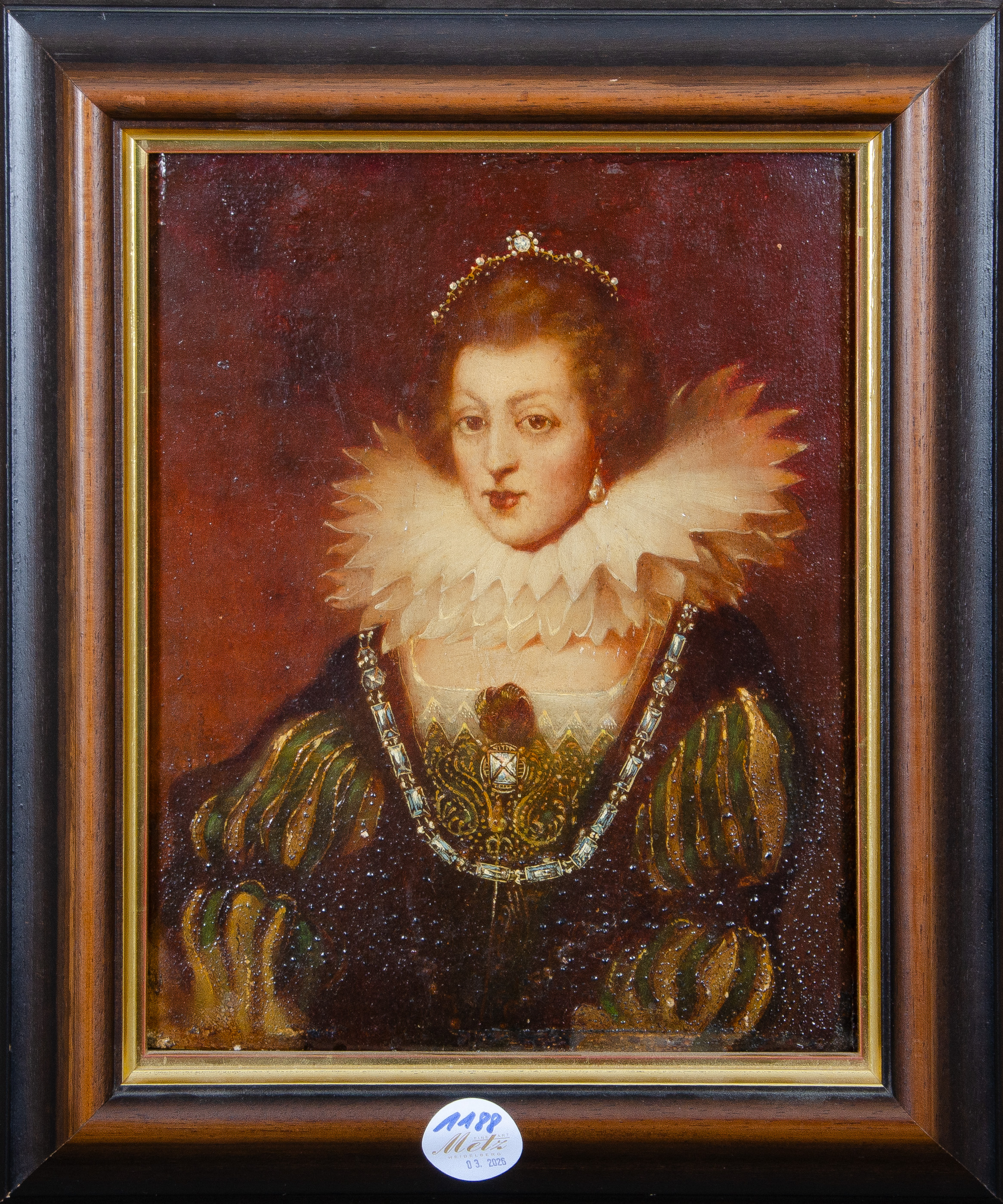 - Katalog-Nr: 1188Maler des 18./19. Jhs. Porträt von Anna von Österreich (1601-1666). Öl/Holz, gerahmt, 27 x 21,5 cm.o.L.