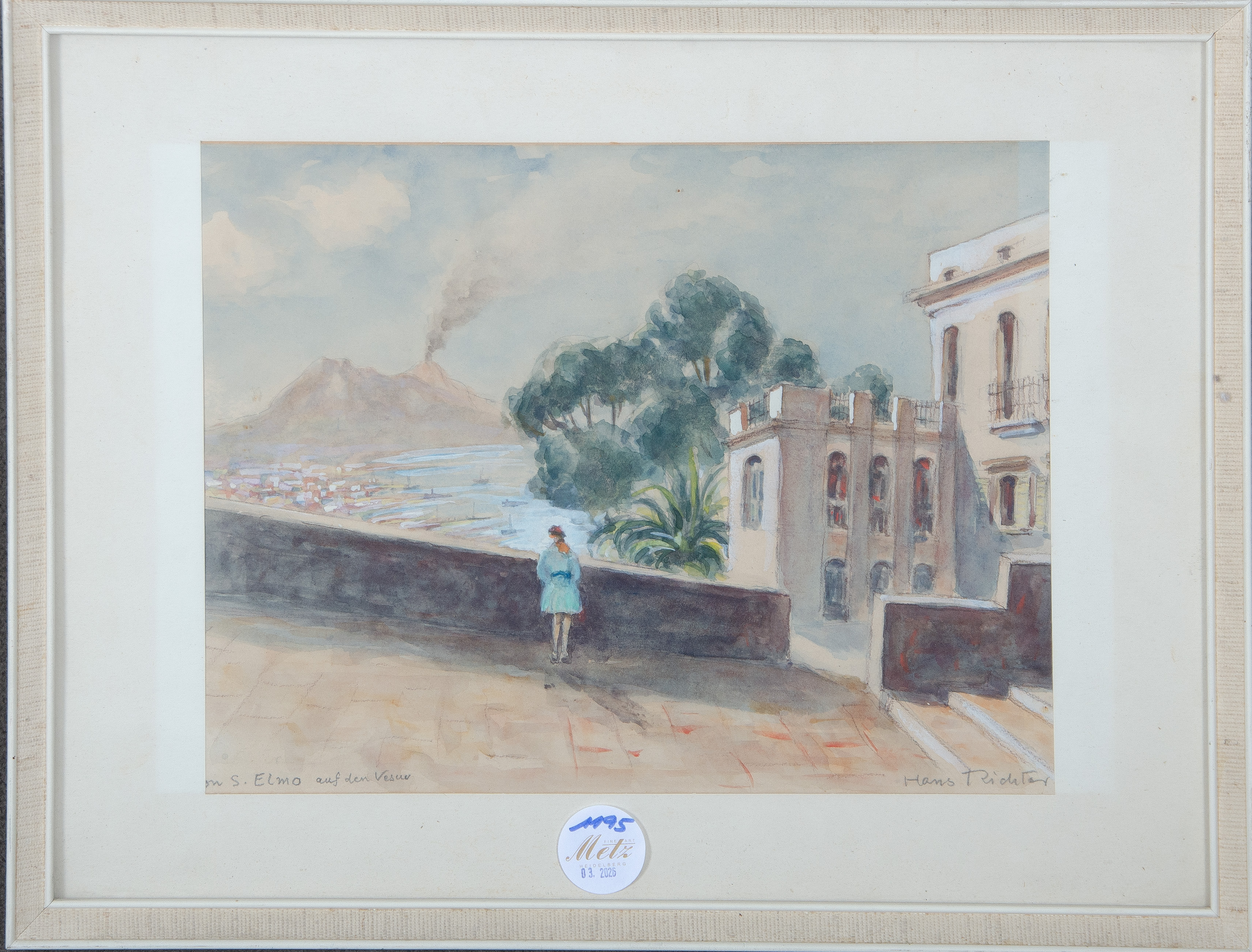 - Katalog-Nr: 1195Hans Richter (1891-1977). „Blick von S. Elmo auf den Vesuv“. Aquarell/Papier, re./u./sign., mit Passepartout hi./Gl. gerahmt, 22 x 29 cm.o.L.