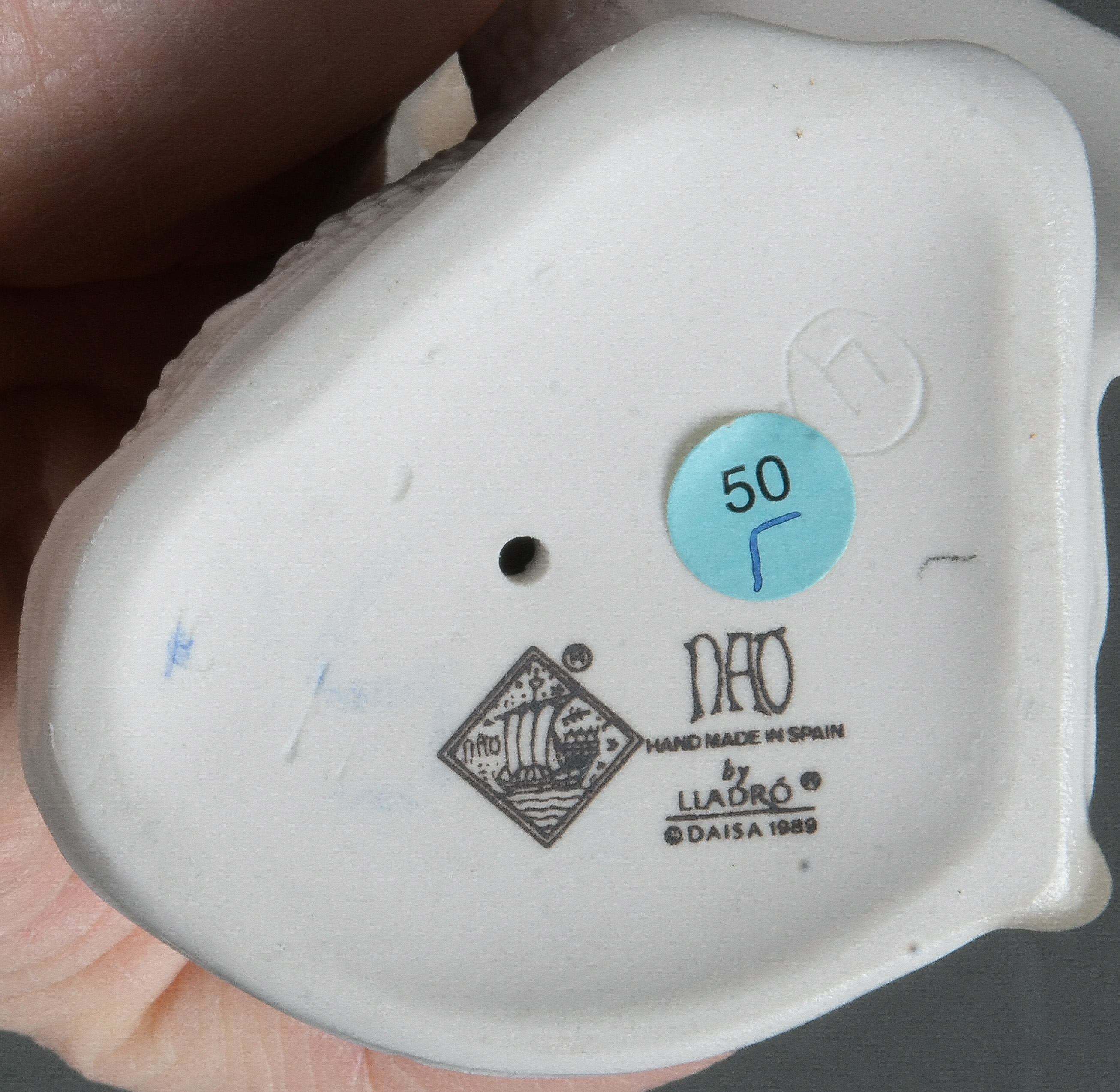 - Katalog-Nr: 1227Zicklein auf zerbrochener Zwiebelmusterschale. Meissen 20. Jh. Porzellan, sparsam bemalt, verso am Sockel unterglasurblaue Schwertermarke, Formnummer „V. 107“ . Entwurf und sign. E.(rich) Hösel, H=32 cm.o.L.