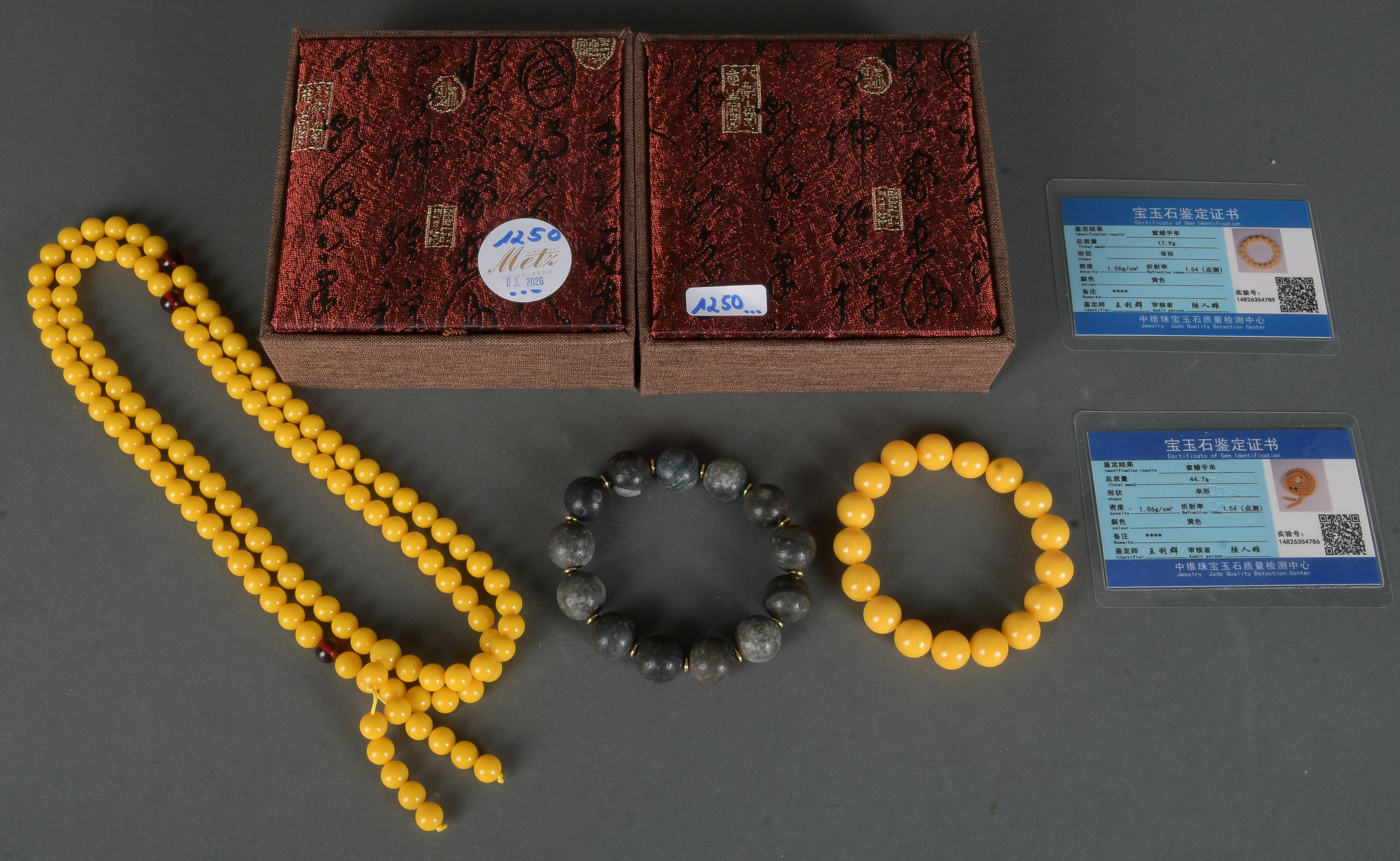 - Katalog-Nr: 1250Eine asiatische Gebetskette und zwei Armbänder in Box.o.L.