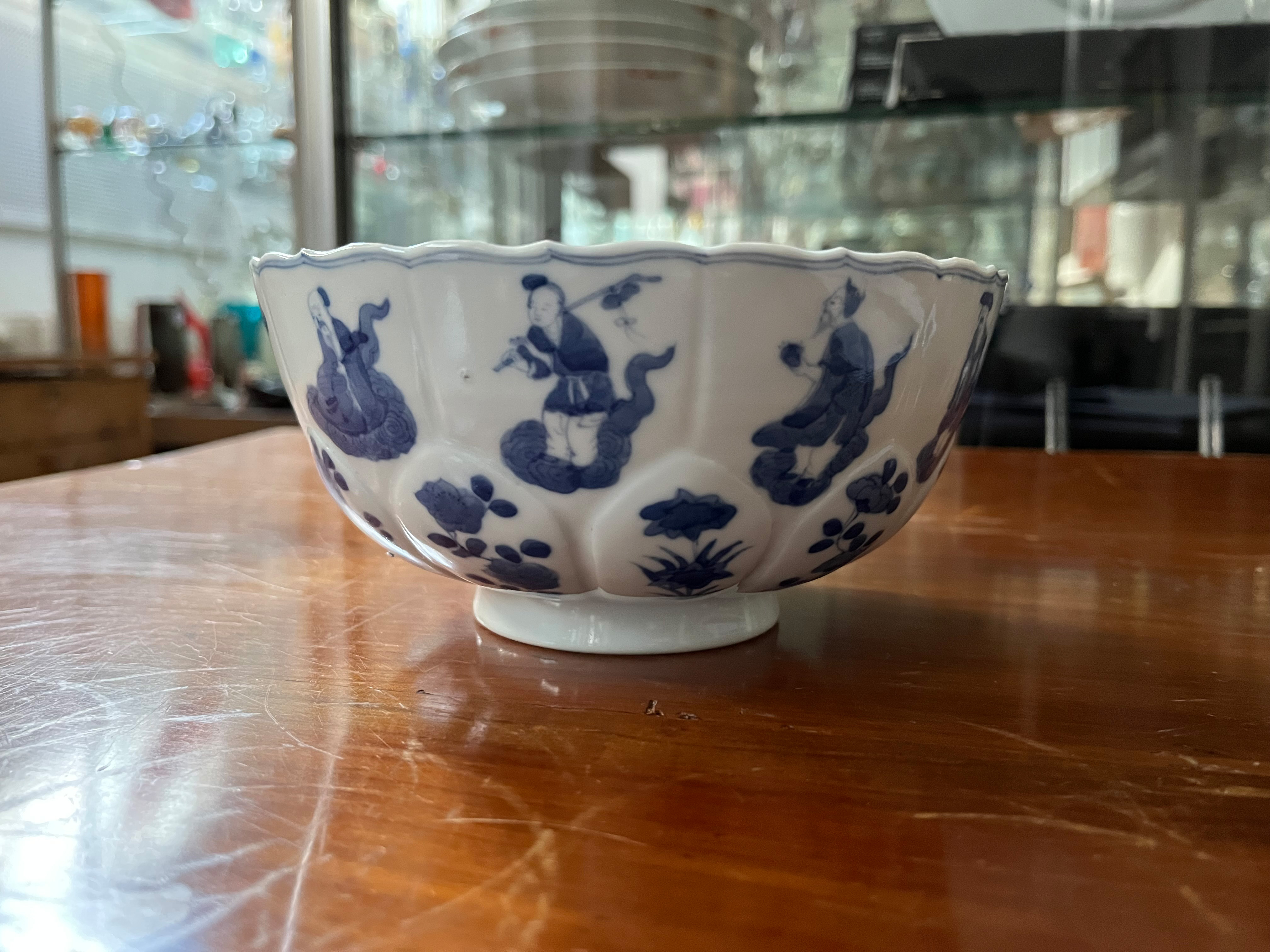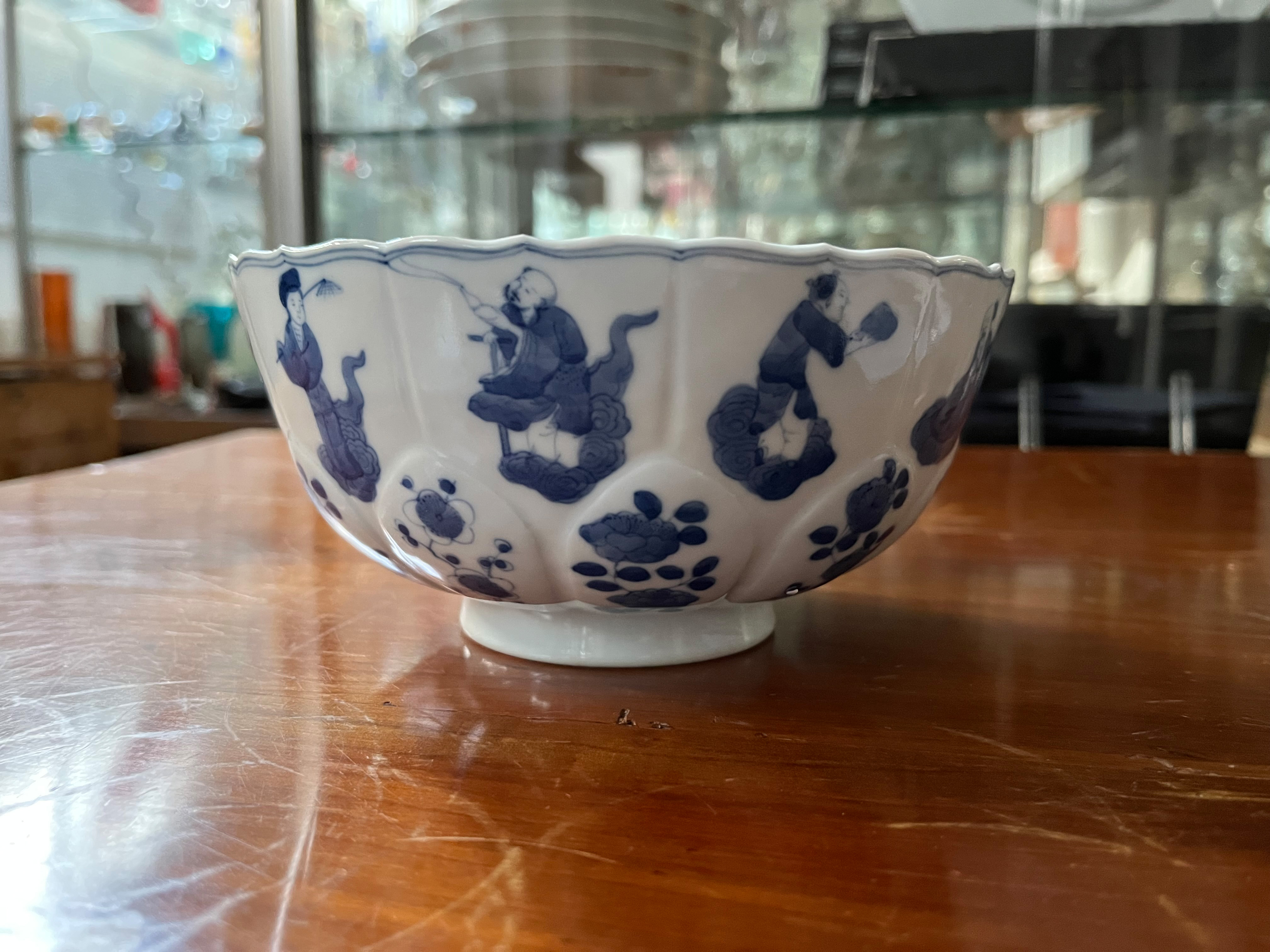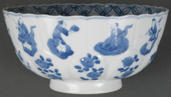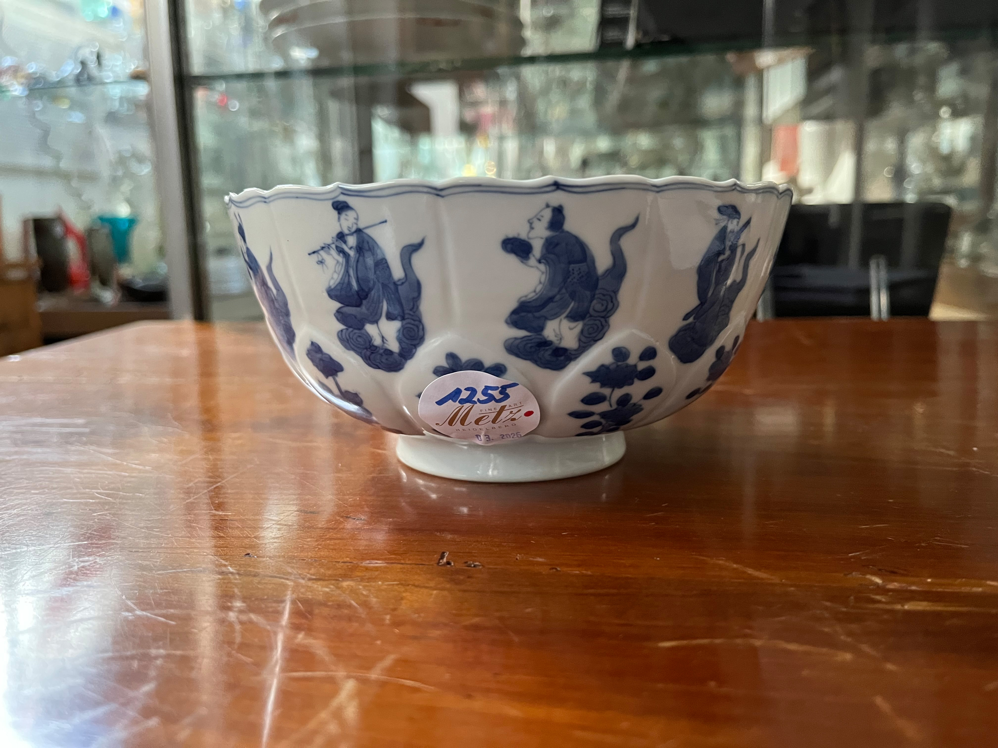 - Katalog-Nr: 1255Runde Kumme. Asien. Porzellan, unterglasurblau bemalt; am Boden gemarkt, H=8,5 cm, D=17 cm.o.L.