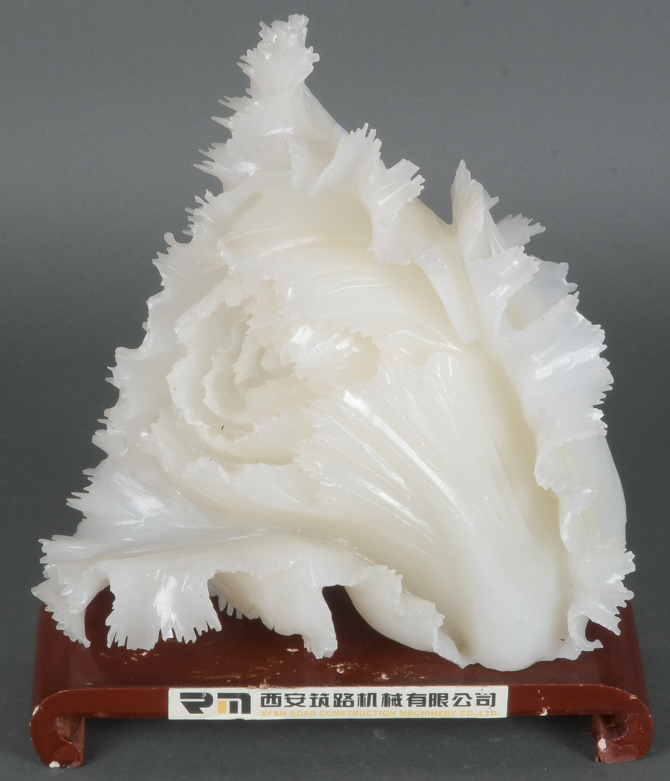 - Katalog-Nr: 1263Blätterbouquet. Asien. Weiße Jade, exzellent geschnitzt, teilw. poliert, auf Holzsockel, H=22,5 / 25 cm. (min. best.)o.L.