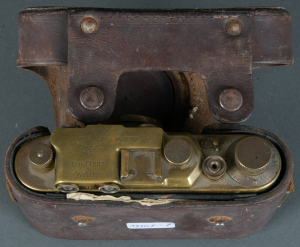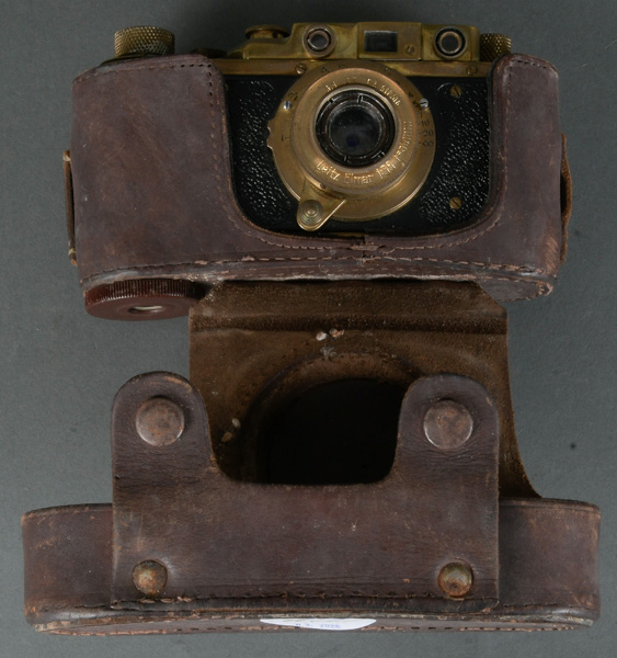 - Katalog-Nr: 1271Fotoapparat, Leica „No 258001“, im Originalfutteral, beschriftet „D.R.P.“ Ernst Leitz, Wetzlar. (Funktion ungeprüft)o.L.