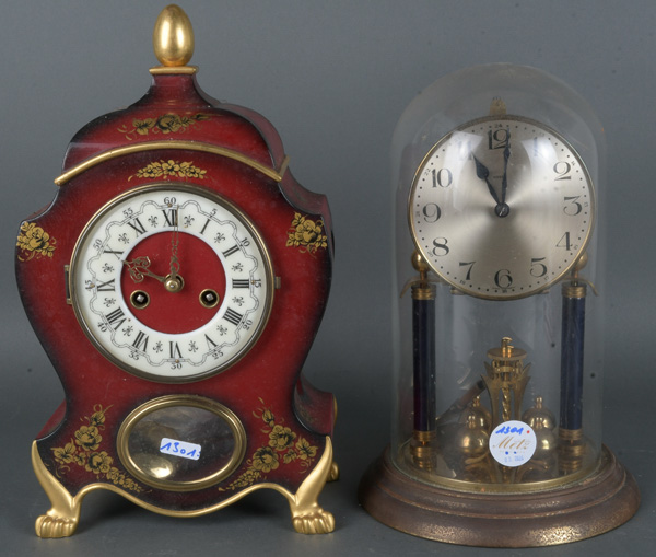 - Katalog-Nr: 1301Zwei Tischuhren, u.a. Kienzle, H=30 / 33 cm. (Funktion ungeprüft)o.L.