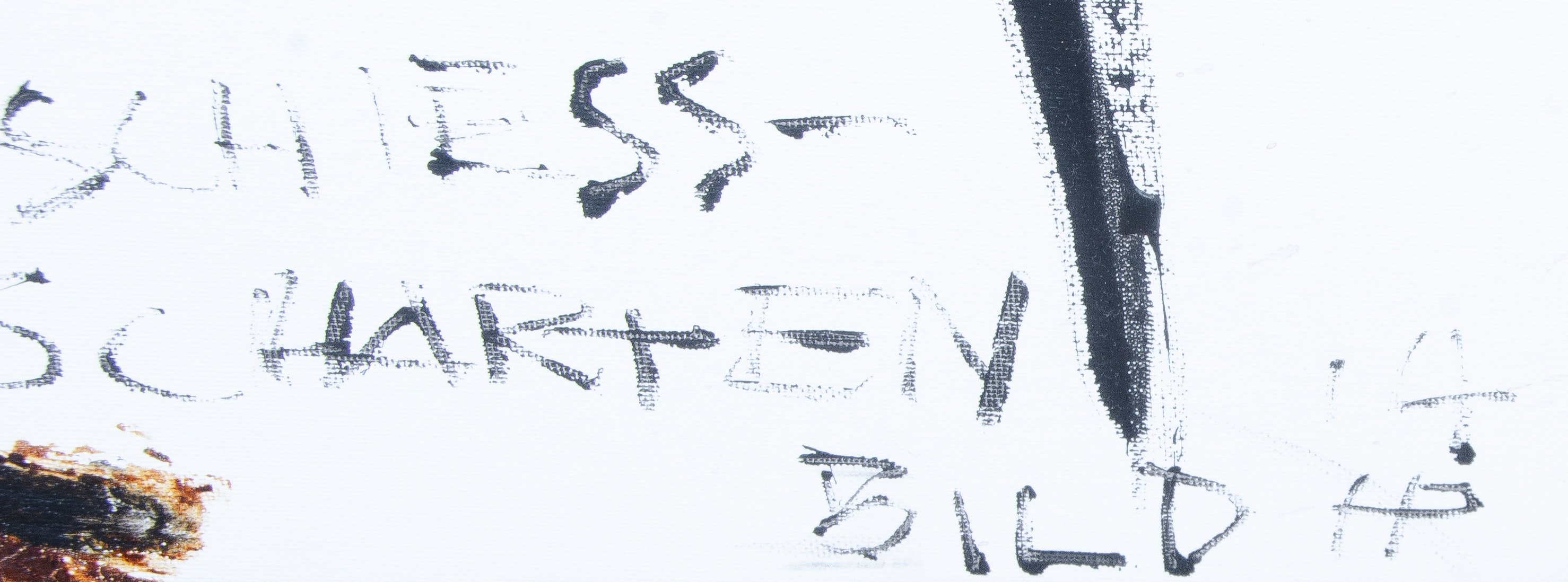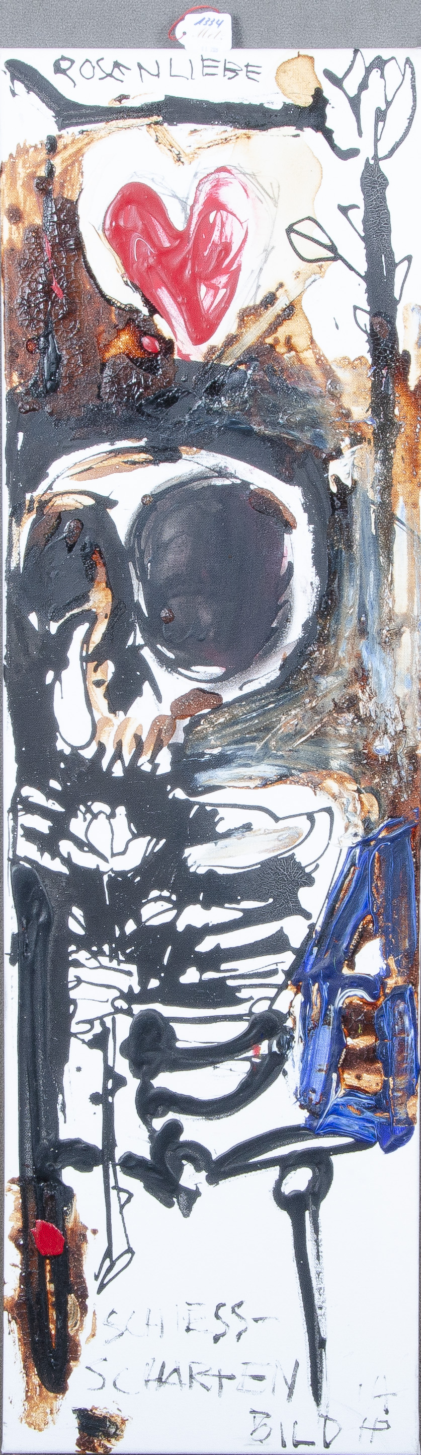 - Katalog-Nr: 1334Heiko Pippig (*1951). „Rosenliebe“ aus der Serie Schiess-Scharten. Öl/Lw., re./u./bez./monogr./dat. (20)14, 109 x 30 cm.o.L.