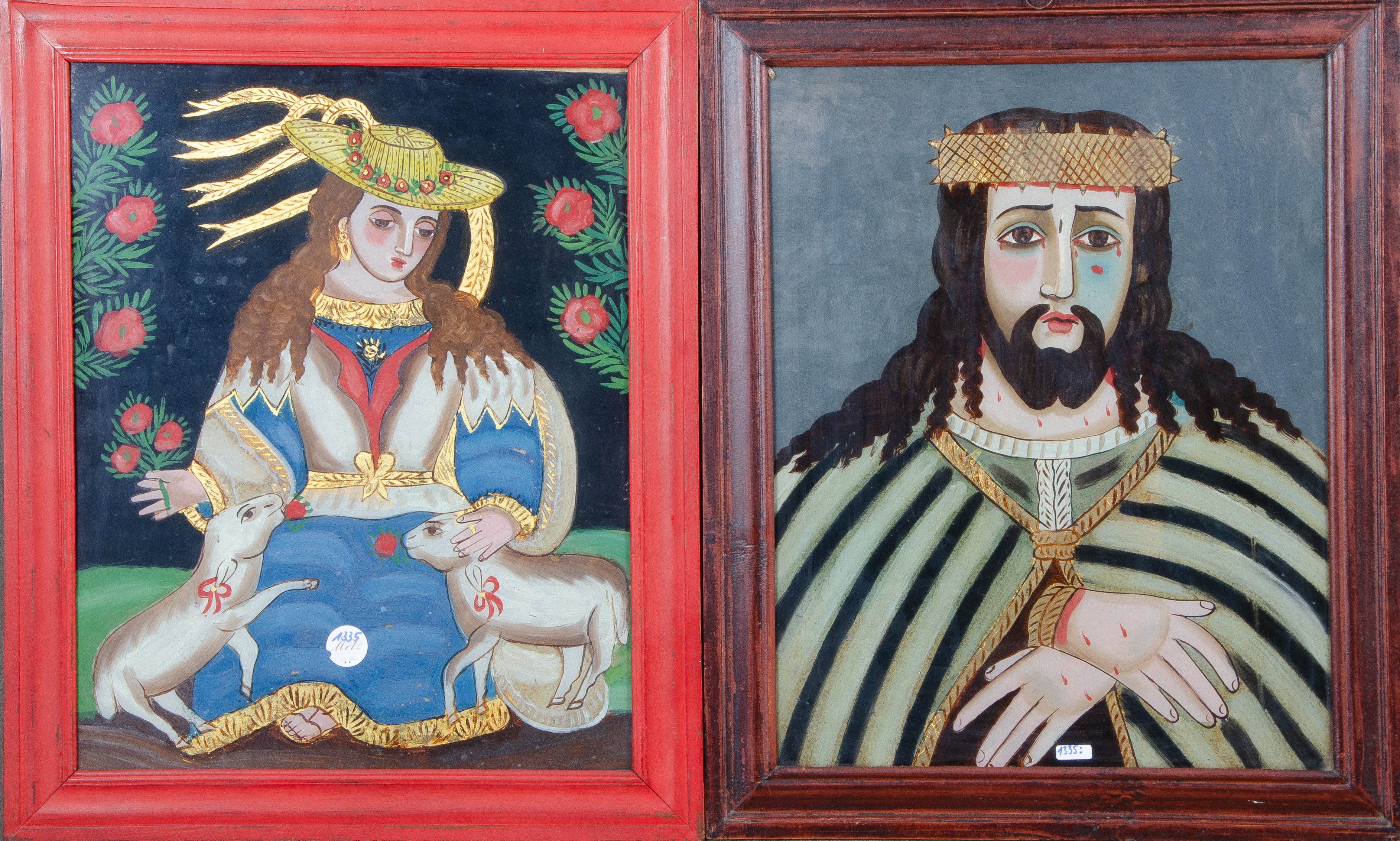 - Katalog-Nr: 1335Zwei Hinterglasmalereien mit christlichen Motiven, je 43,5 x 42,5 cm.o.L.