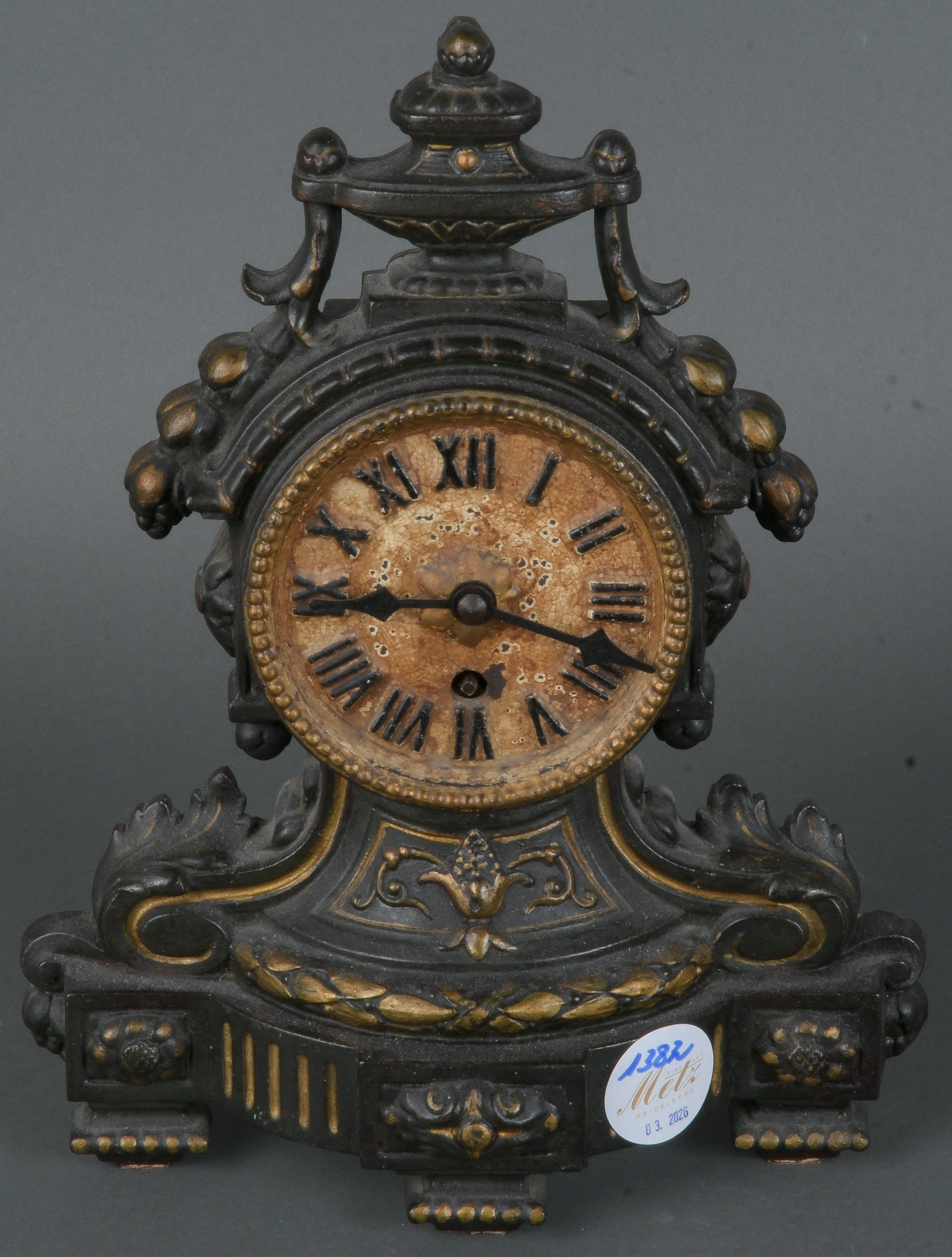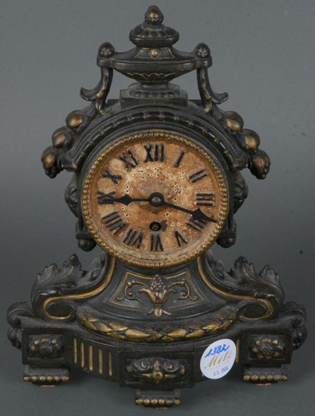 - Katalog-Nr: 1382Tischuhr. Deutsch 20. Jh. Kunstmasse, H=26,5 cm, B=22 cm, T=10 cm. (Funktion ungeprüft)o.L.